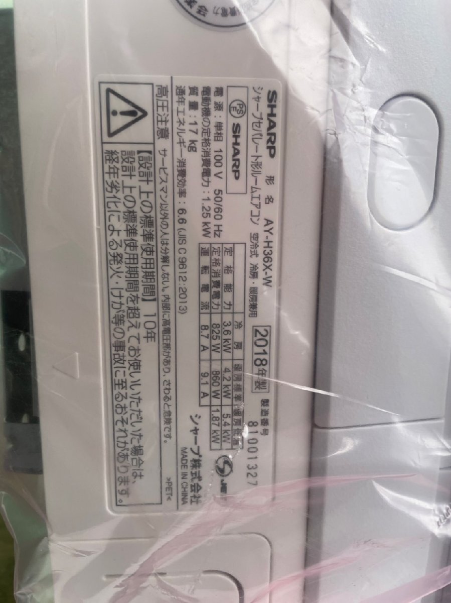 シャープ AY-H36X-W エアコン 室内機のみ 未使用品の出品となります。状態は未使用みたいですが、長期倉庫に保管された為、梱包の痛みあります。未使用品として入荷してきてはおりますが、未確認ですので本体に凹みや傷が有るかもしれません。動作につきましては室外機が有りませんので動作未確認となります。動くかどうかの保証は致しかねますので、動作及び外装などノークレーム・ノーリターンでお願いします。超特価の35800円スタートでお願いいたします。落札価格に別途消費税がかかります。エアコンの室内機のみ、室外機のみの商品はほかの販路でも販売させていただいておりますので、ご希望の場合はなるべく早くご入札をお願いします。入札がない場合は取り消しをすることがございますのでご注意ください。ほかにも多数出品しておりますのでよろしくお願いいたします。