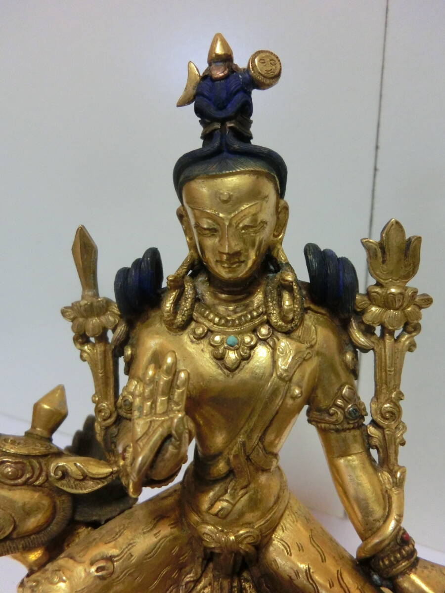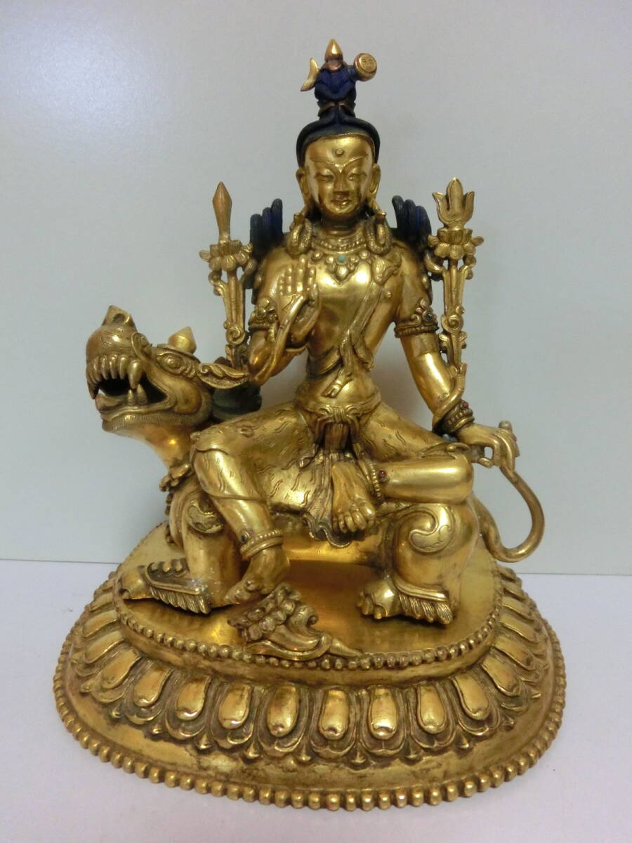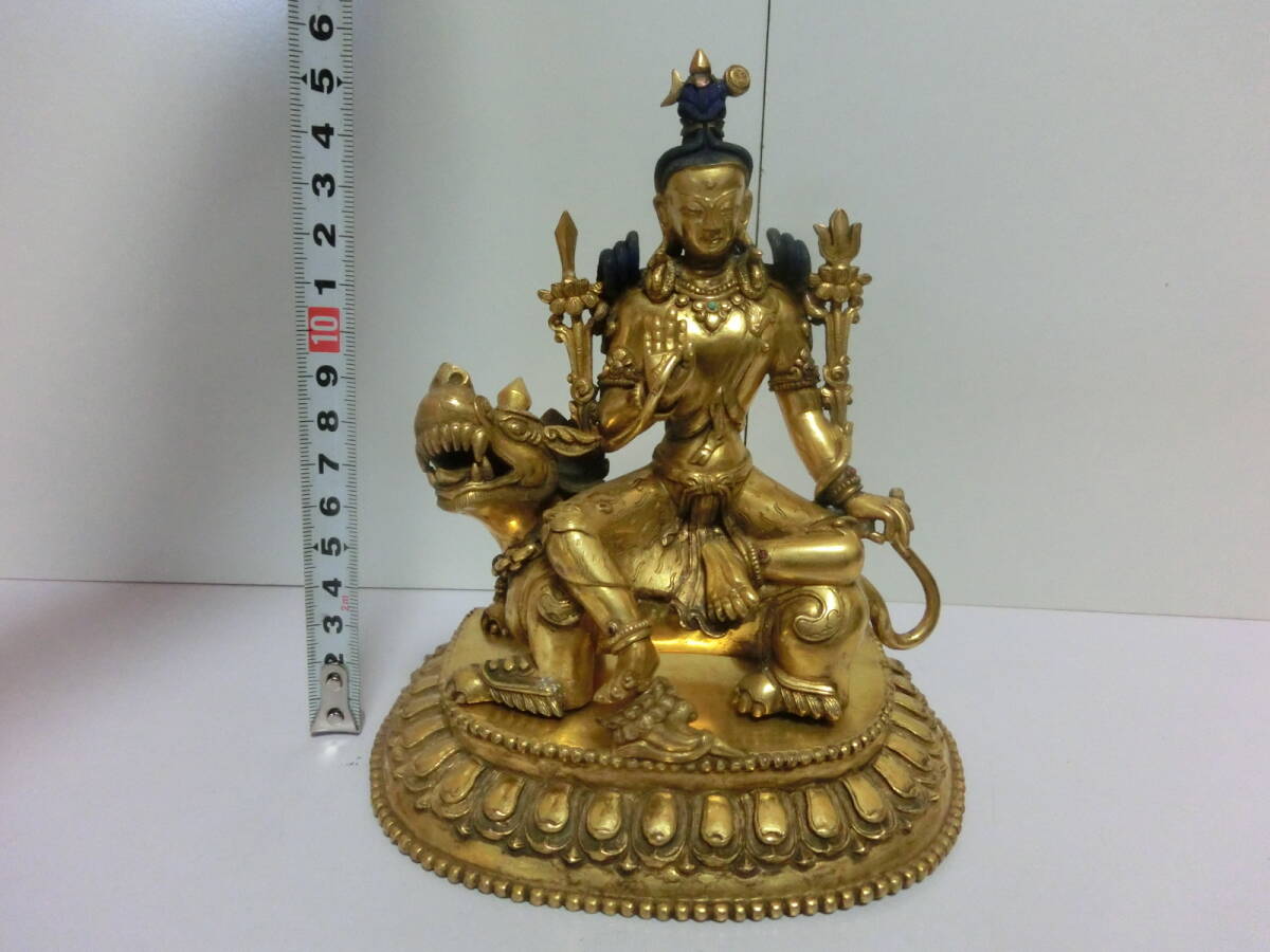 獅子吼観音 仏像 高さ約15㎝ 重量約1144g 素材不明 鋳物 仏教美術 置物 オブジェ