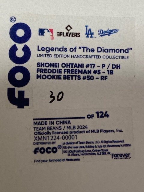 FOCO Legends of "The Diamond" 30/124 限定、大谷翔平+、、新品!