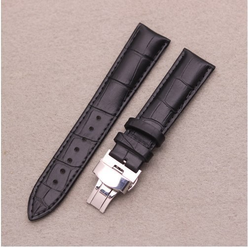 腕時計の取り外しが容易でベルトが傷みにくいプッシュボタン式Dバックル仕様です。