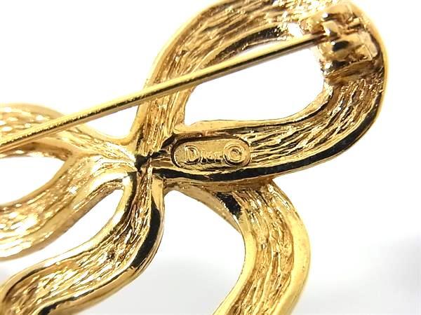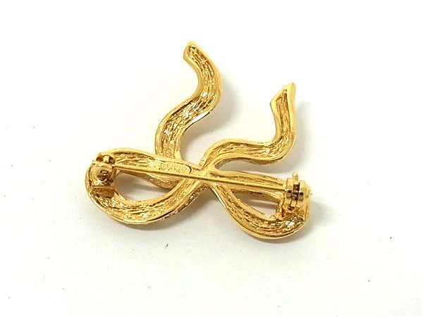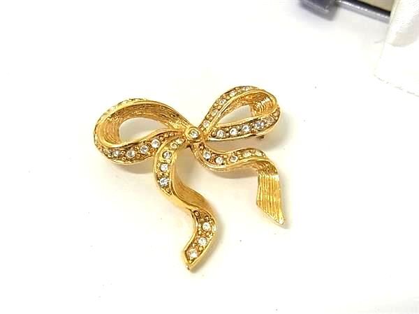 1円 ■極美品■ ChristianDior ディオール ラインストーン リボン ピンブローチ ピンバッジ アクセサリー レディース ゴールド系 FT1192