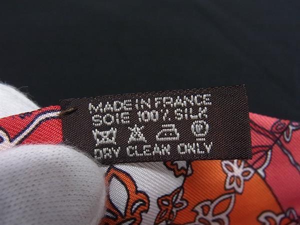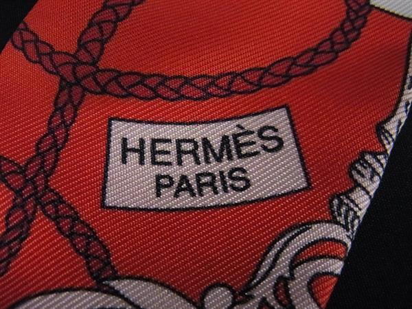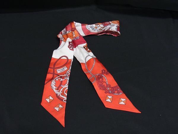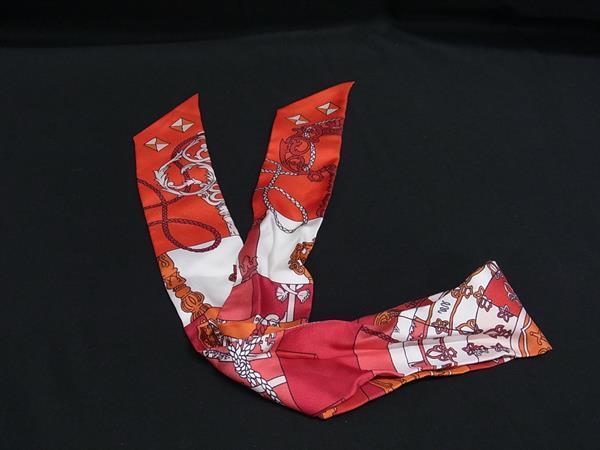 1円 ■美品■ HERMES エルメス TOURS DE CLES【鍵への螺旋】ツイリー シルク100% リボンスカーフ レディース レッド系 FP6029