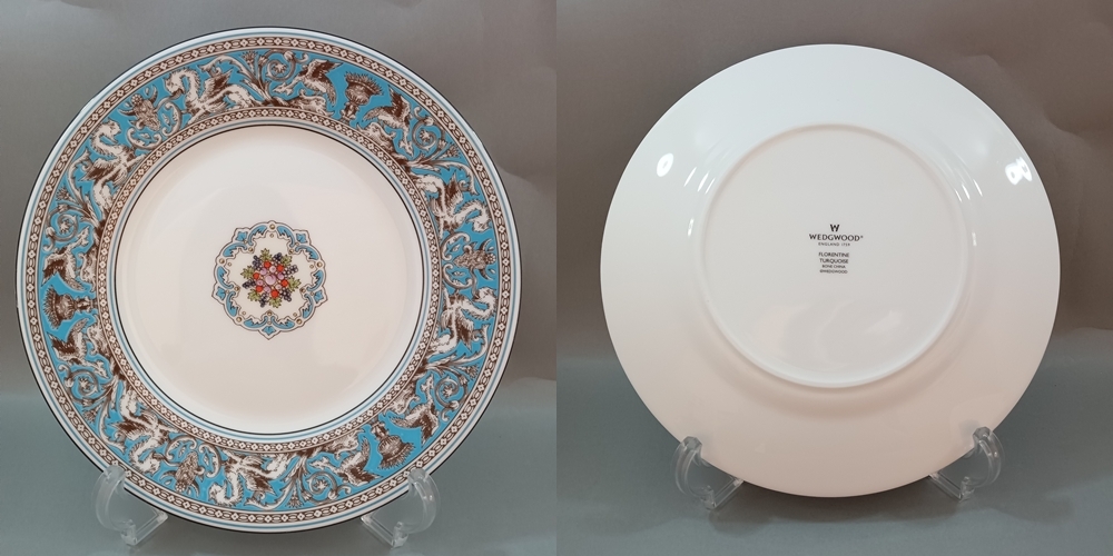 【 WEDGWOOD ウェッジウッド フロレンティーン ターコイズ 20㎝プレート 4枚セット 】