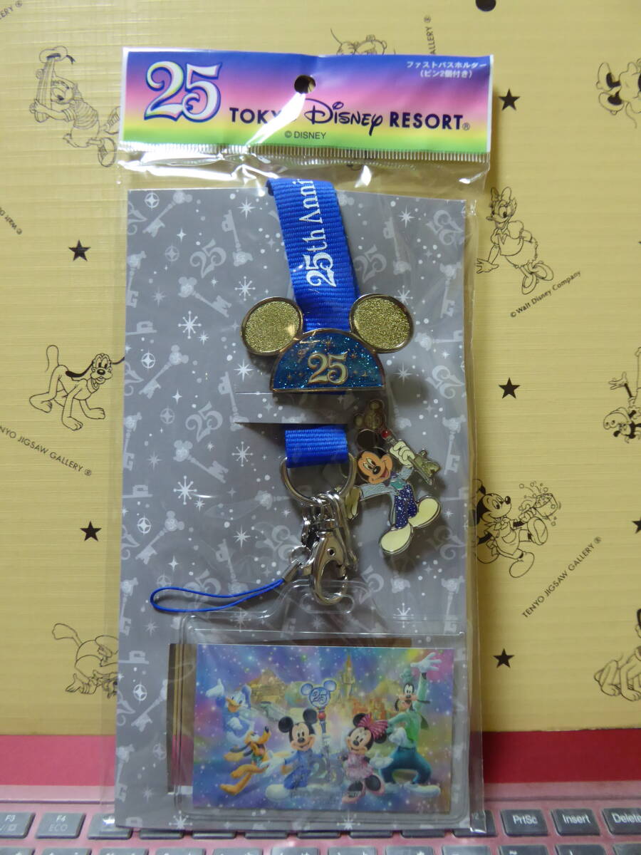 TDL ディズニーランド 25周年・ファストパスホルダー ピンバッジ付き ミッキー・ミニー  TDR・TDS