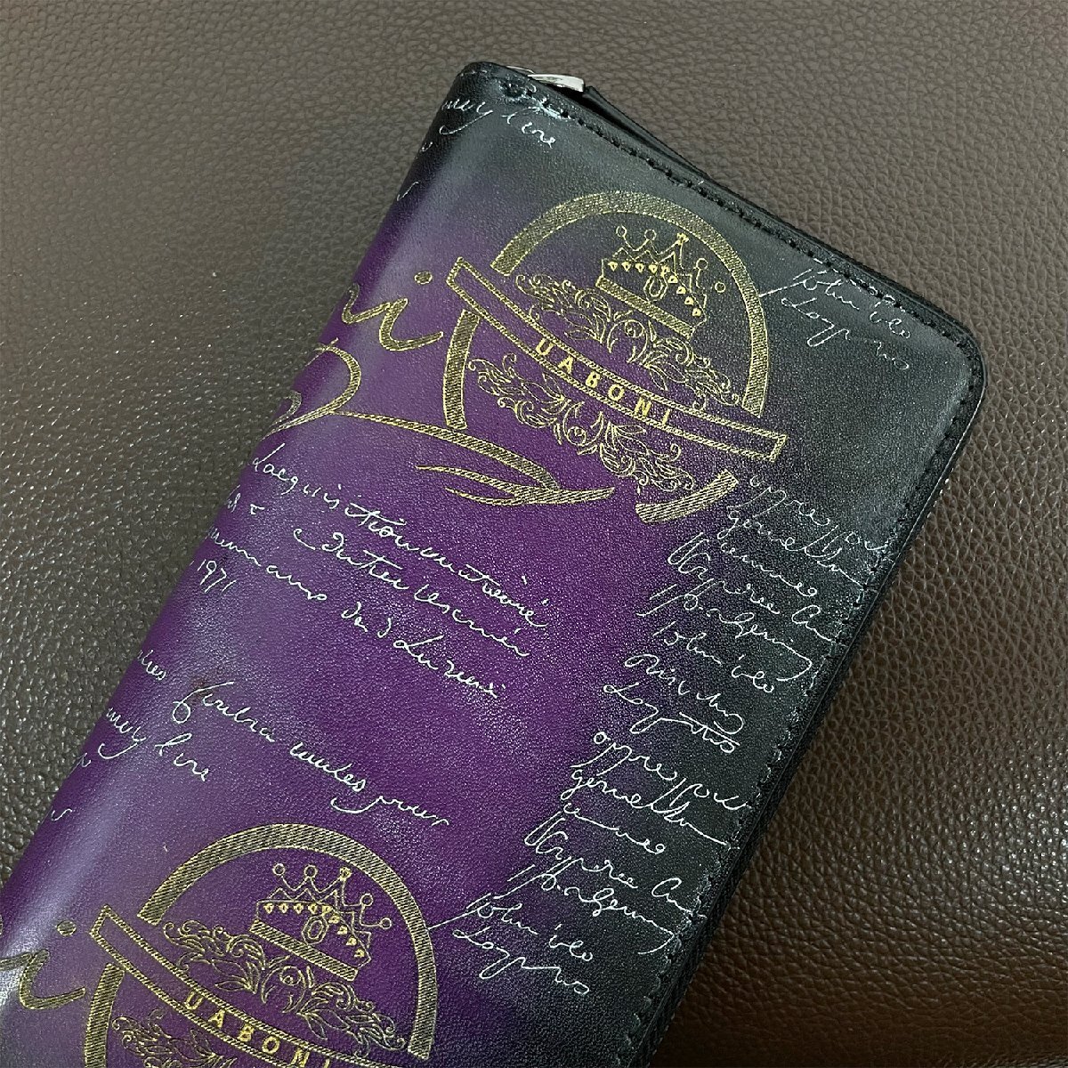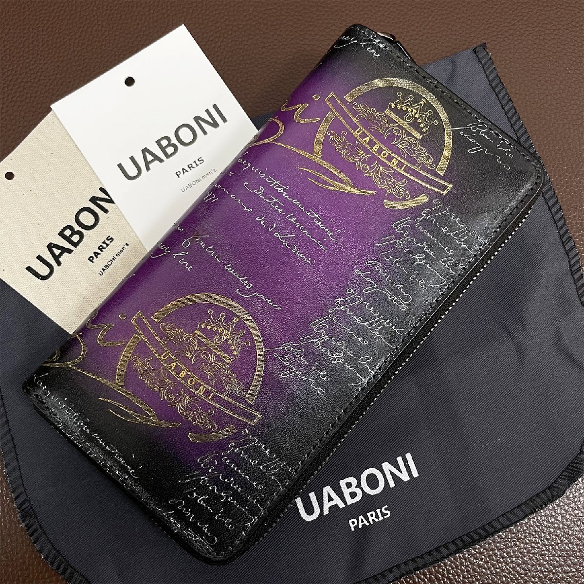 高級定価23万 特注限定品◆UABONI*ユアボニ*幻のパティーヌ*ラウンドファスナー長財布*EU製◆カリグラフィー ゴールデン 手染