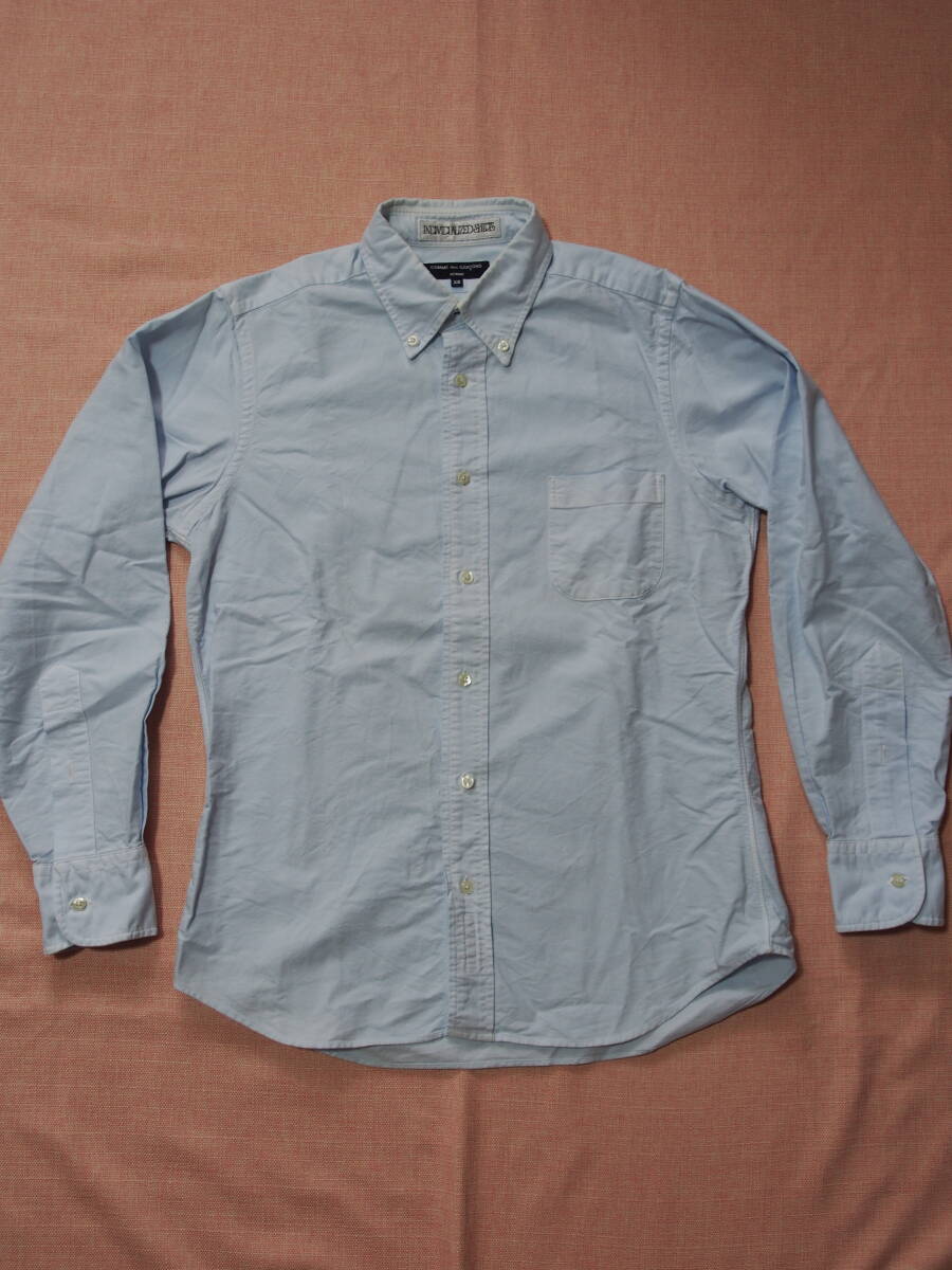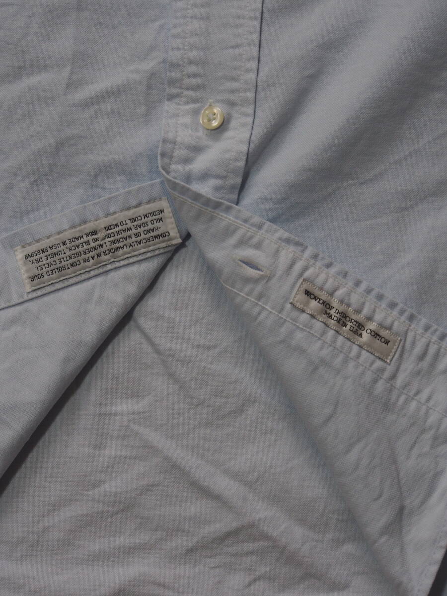 ライズドシャツのアメリカ工場で製作、後染め加工をした凝った作りになって