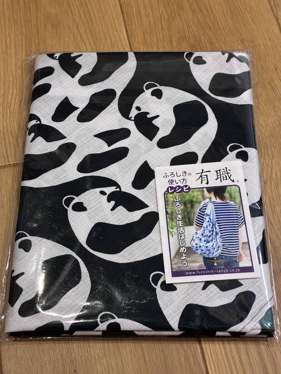 ★新品 風呂敷 ふろしき パンダ柄 黒 緑 105cm×105cm SANYO 三陽商事 ふろしきの使い方付 Y