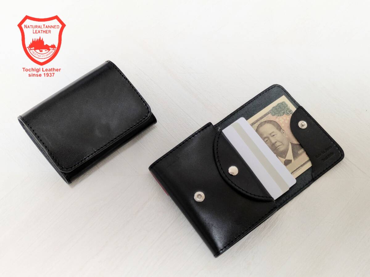 BOXなし 栃木レザー 二つ折り財布 コンパクト財布 ミニ財布 小さい財布 BK 小さい財布 二つ折り 手のひらサイズ キャッシュレス