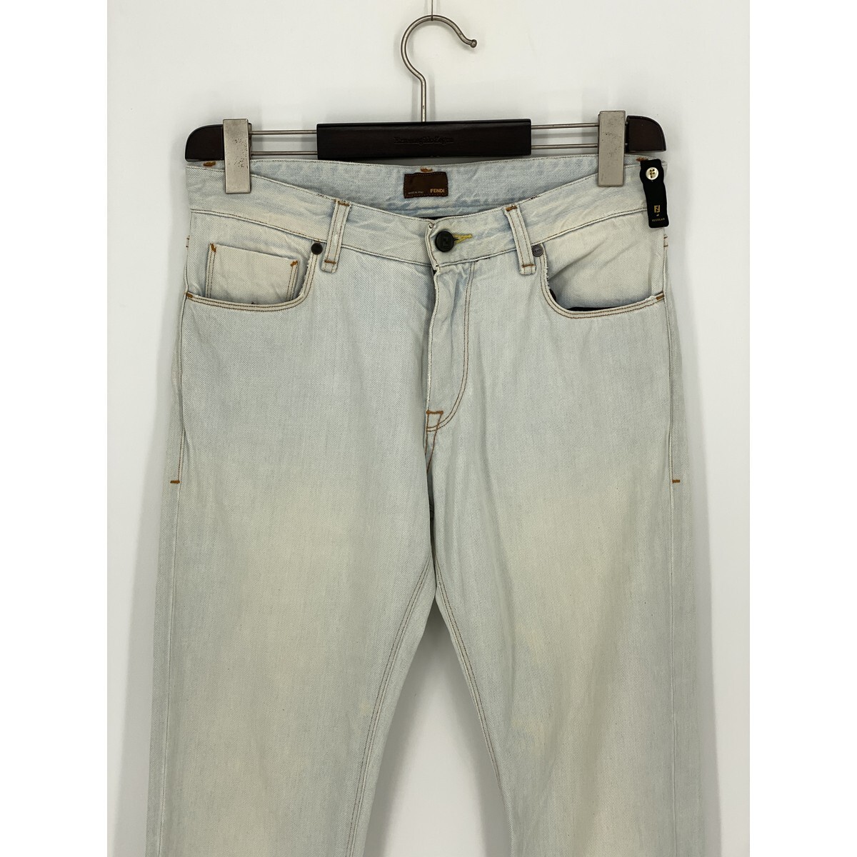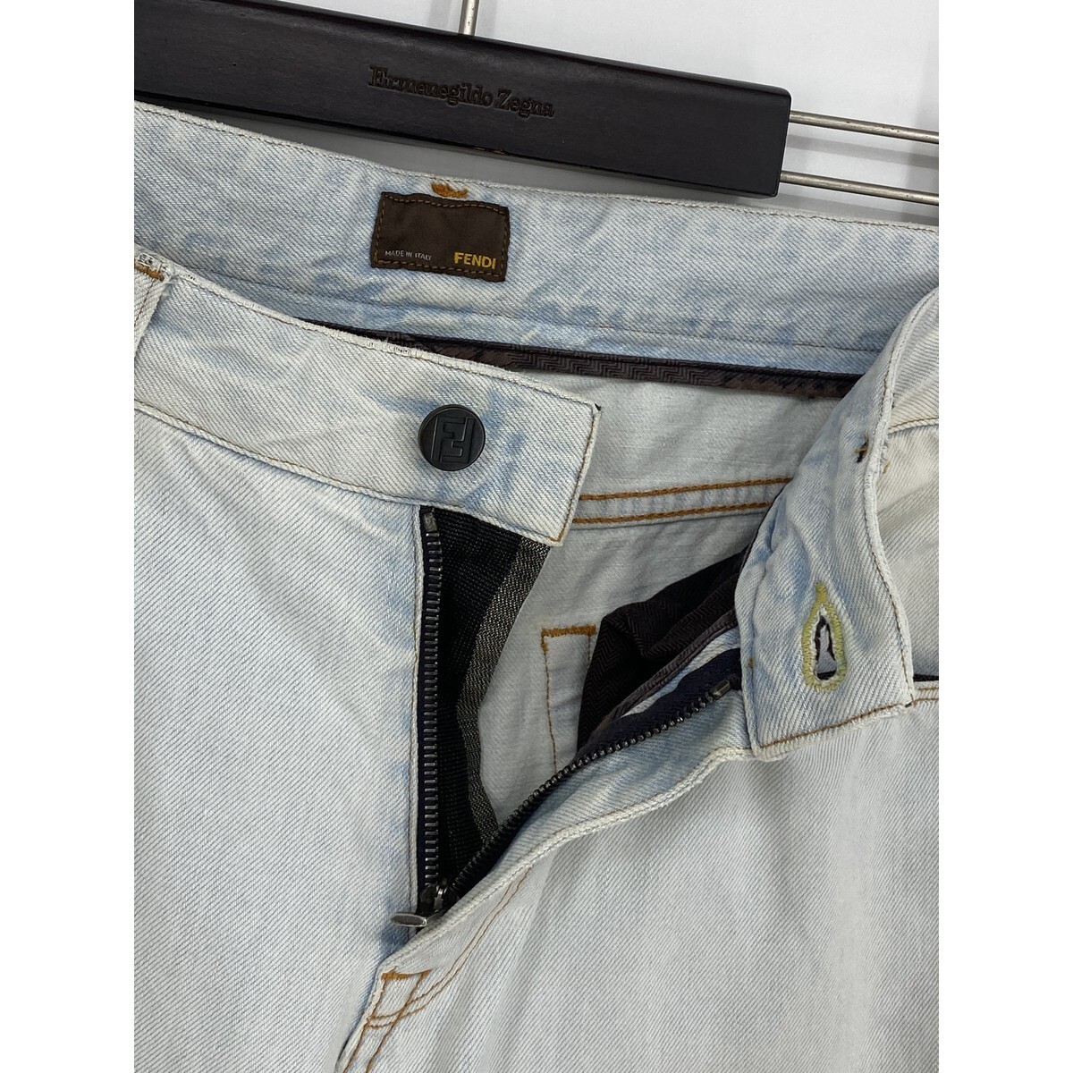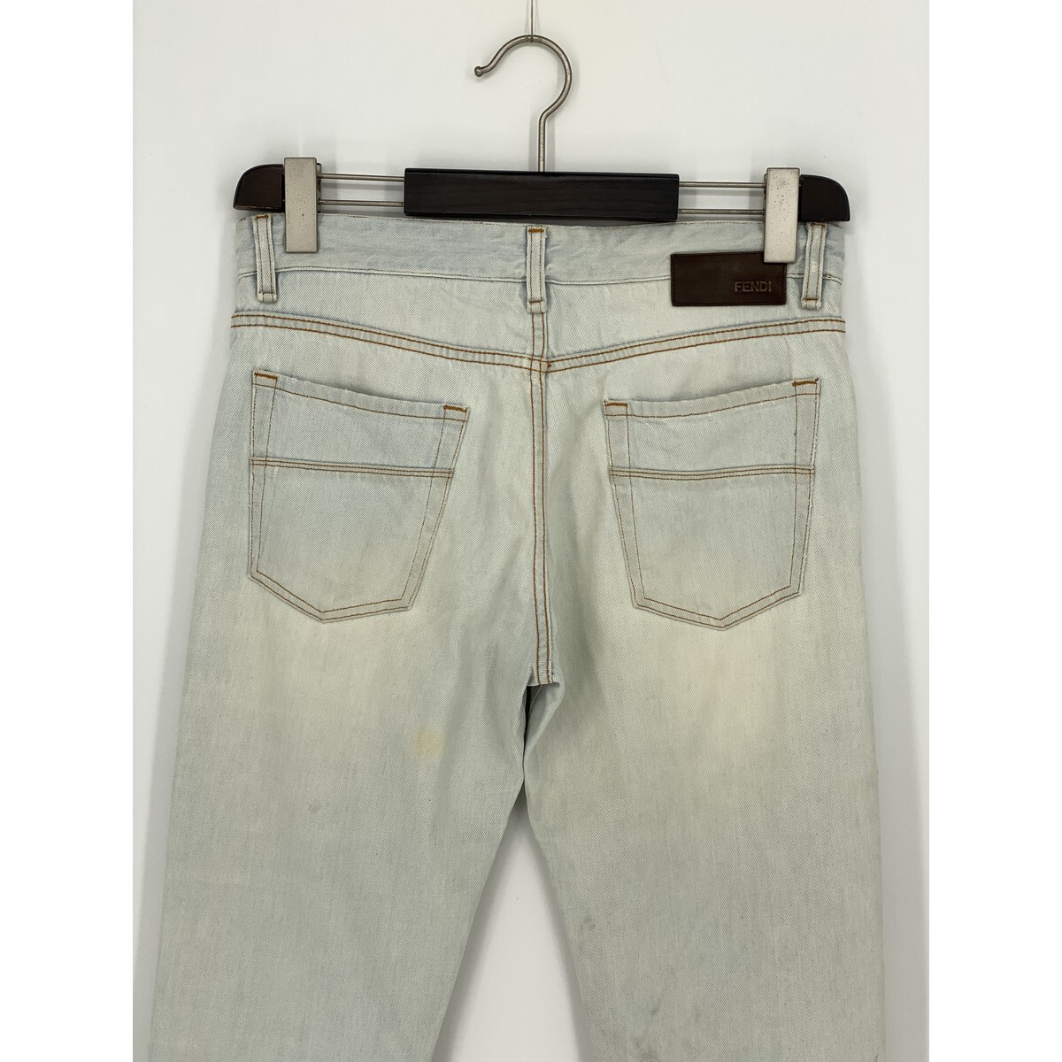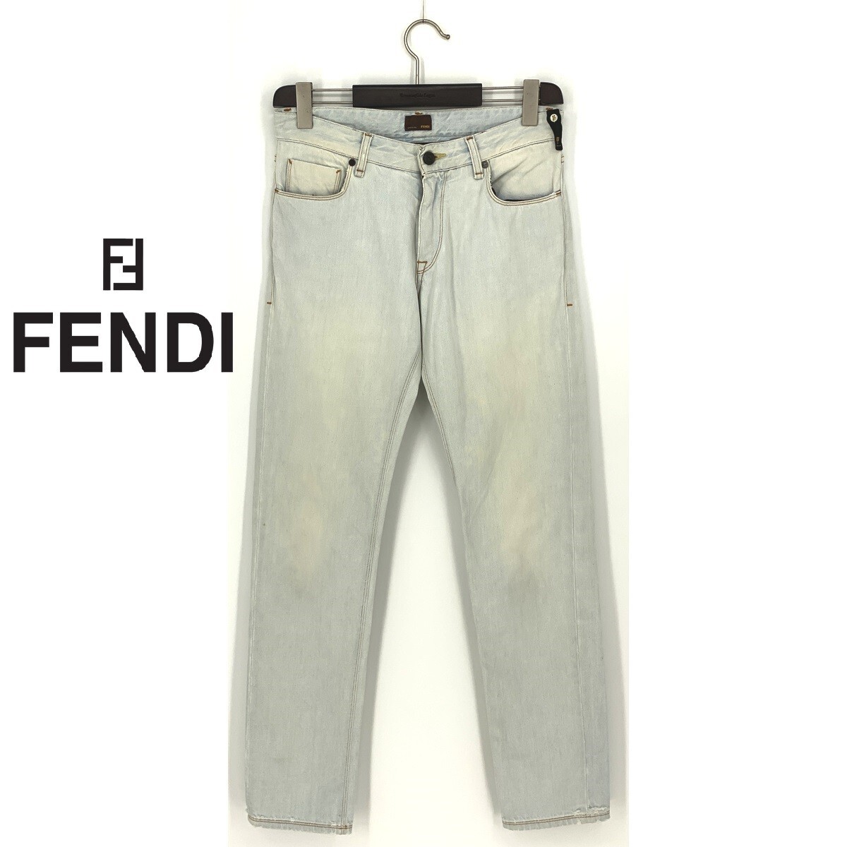 B0902/訳あり FENDI フェンディ コットン riri スレ加工 テーパード ワーク スリム ジーンズ デニムパンツ 30/34 水色 インディゴ メンズ