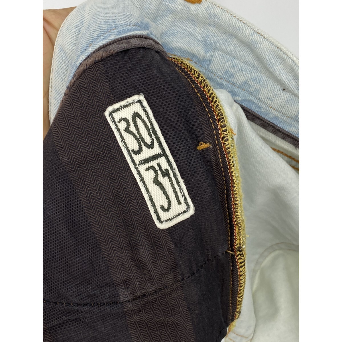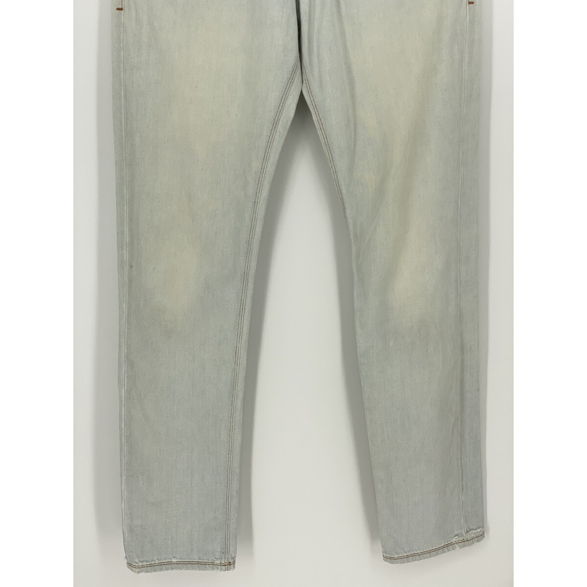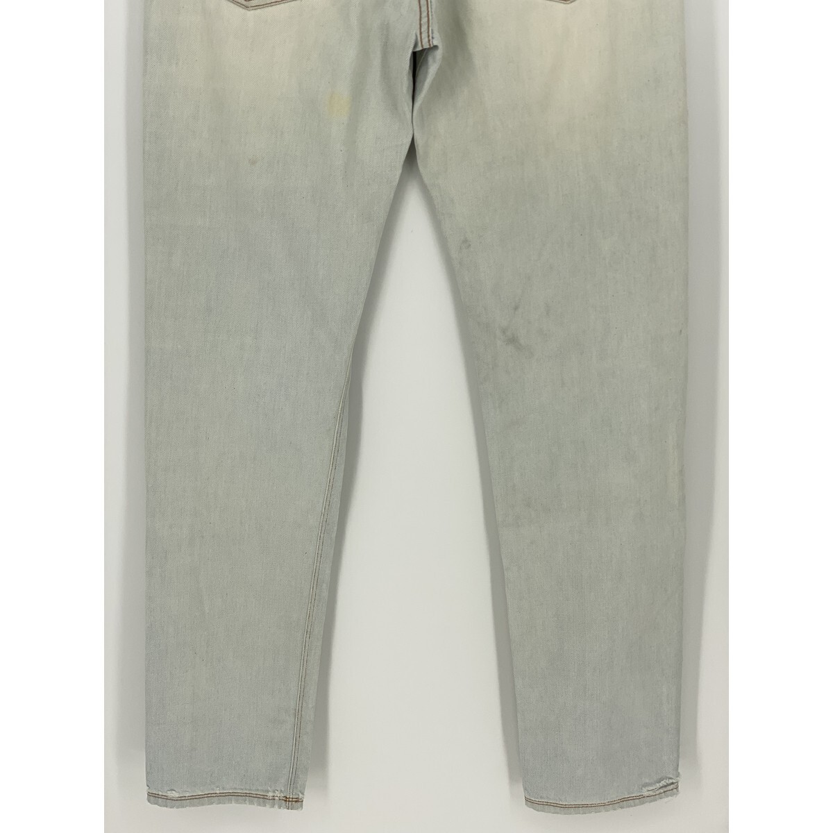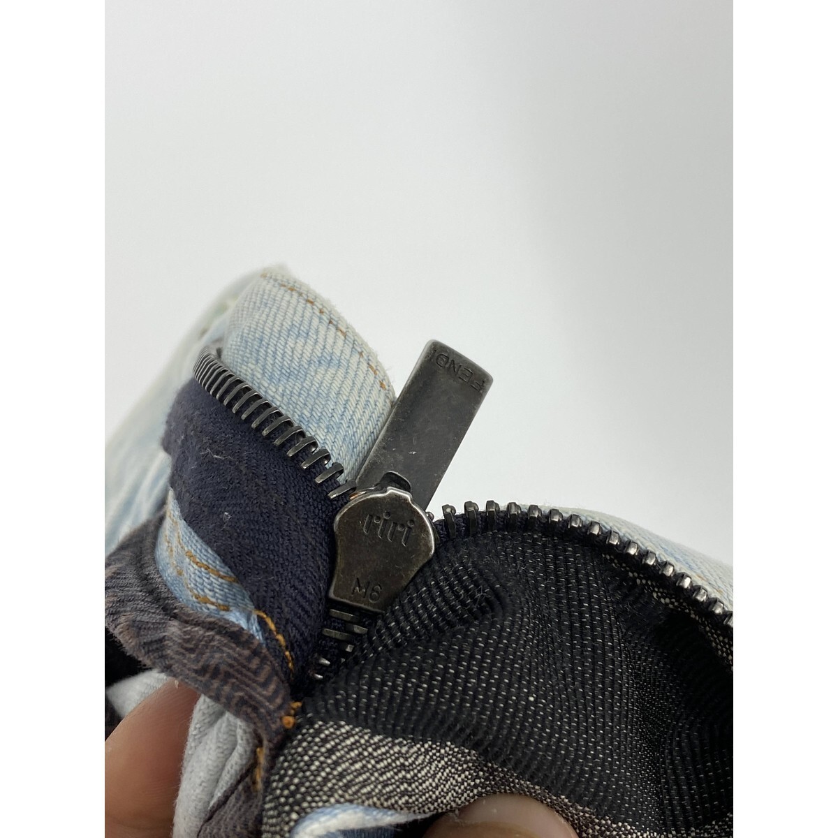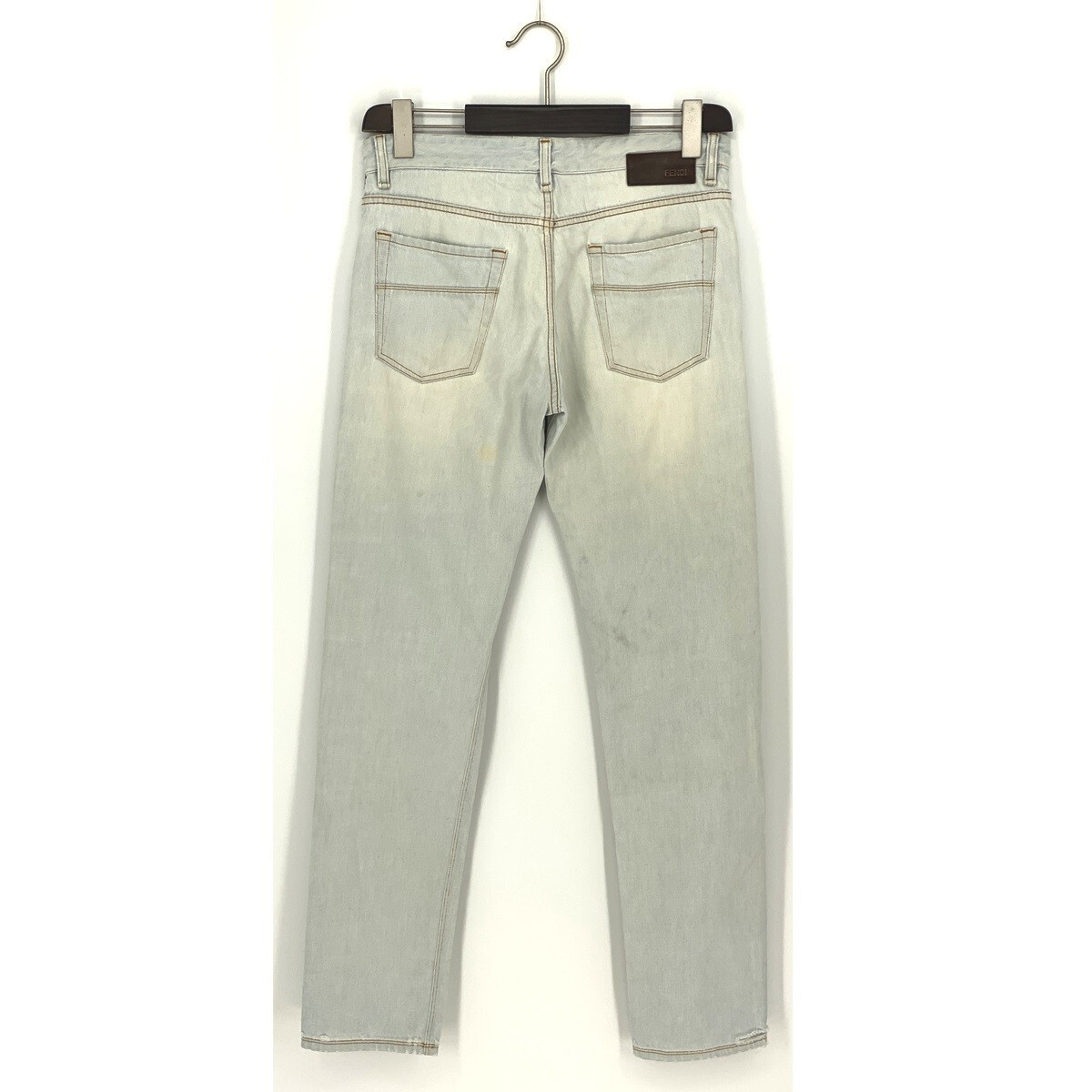 B0902/訳あり FENDI フェンディ コットン riri スレ加工 テーパード ワーク スリム ジーンズ デニムパンツ 30/34 水色 インディゴ メンズ