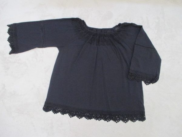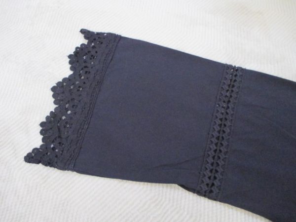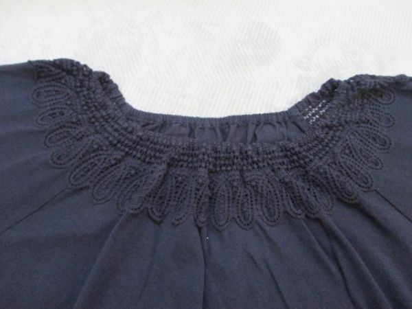 ★フェリシモ★ レースが素敵な 7分袖カットソー L 紺