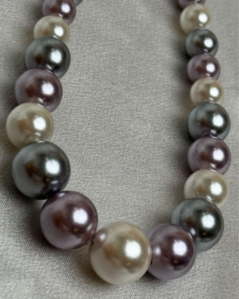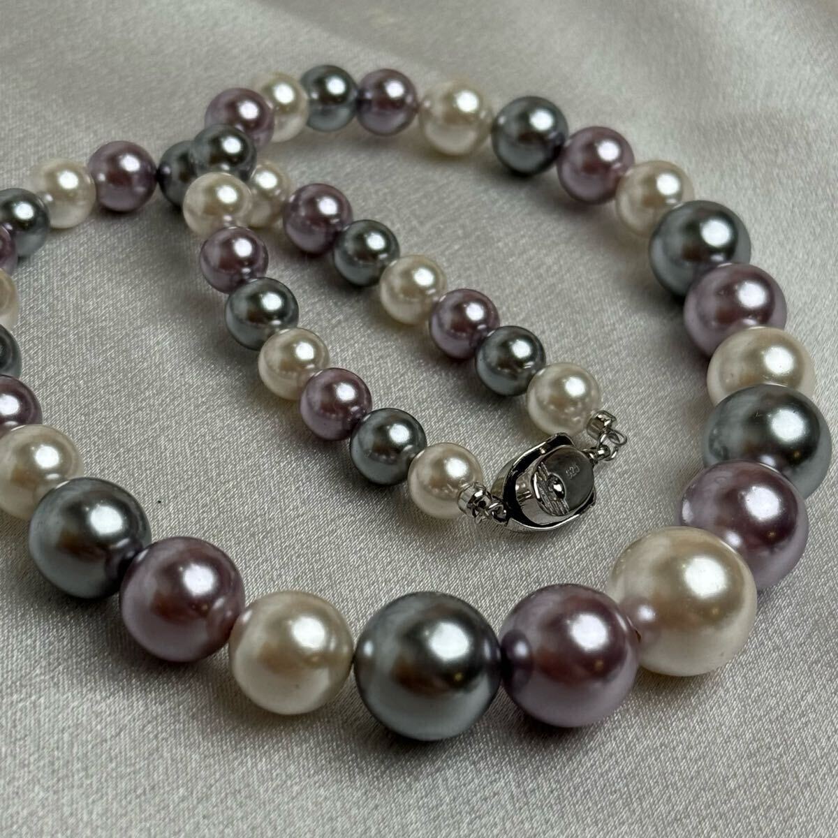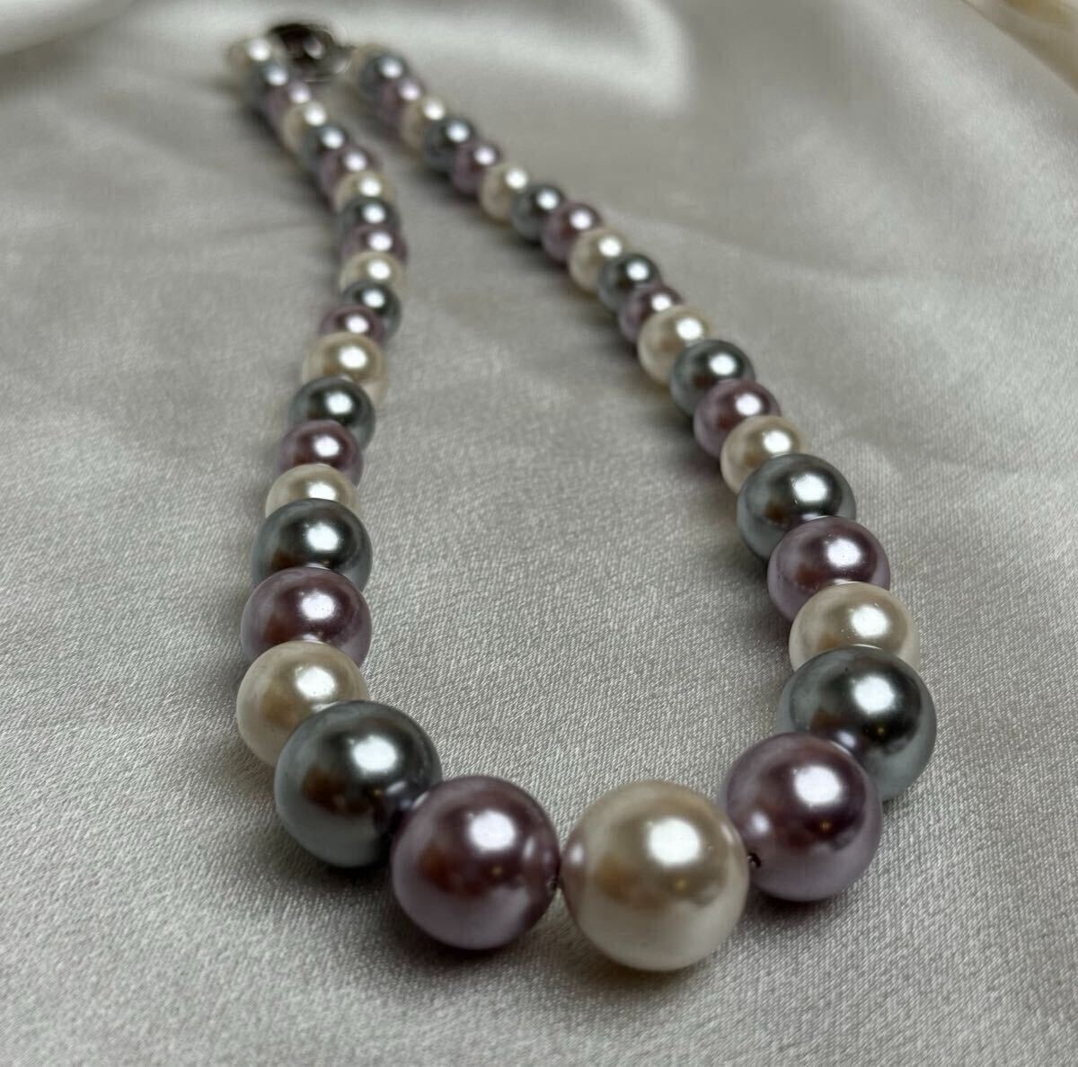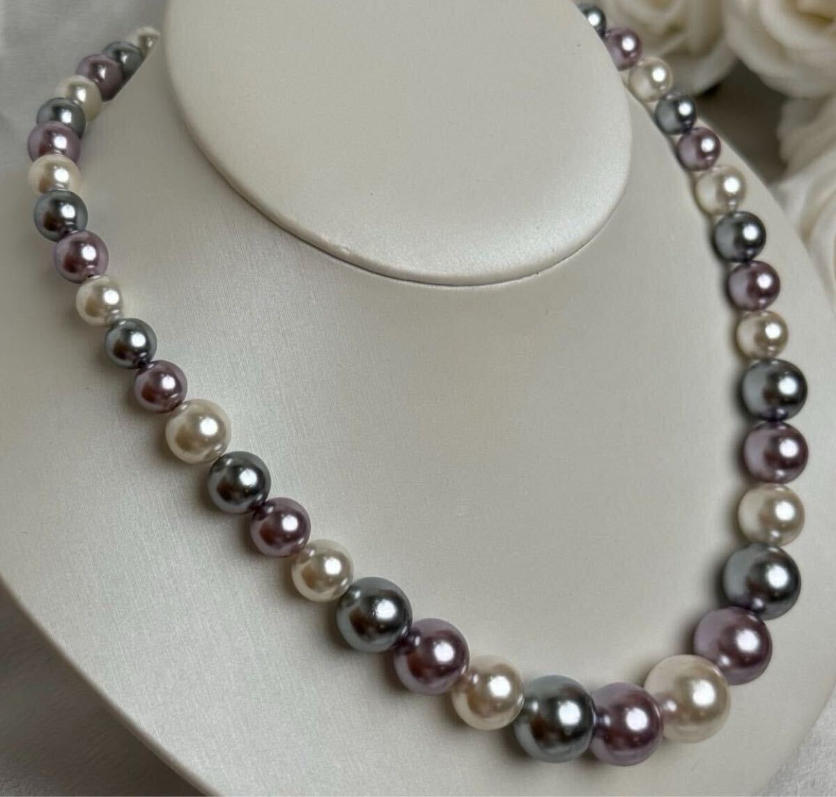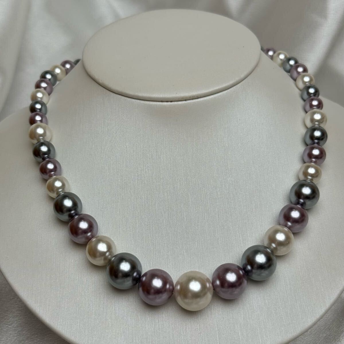 綺麗に輝くマルチカラー系 貝パールネックレスです。