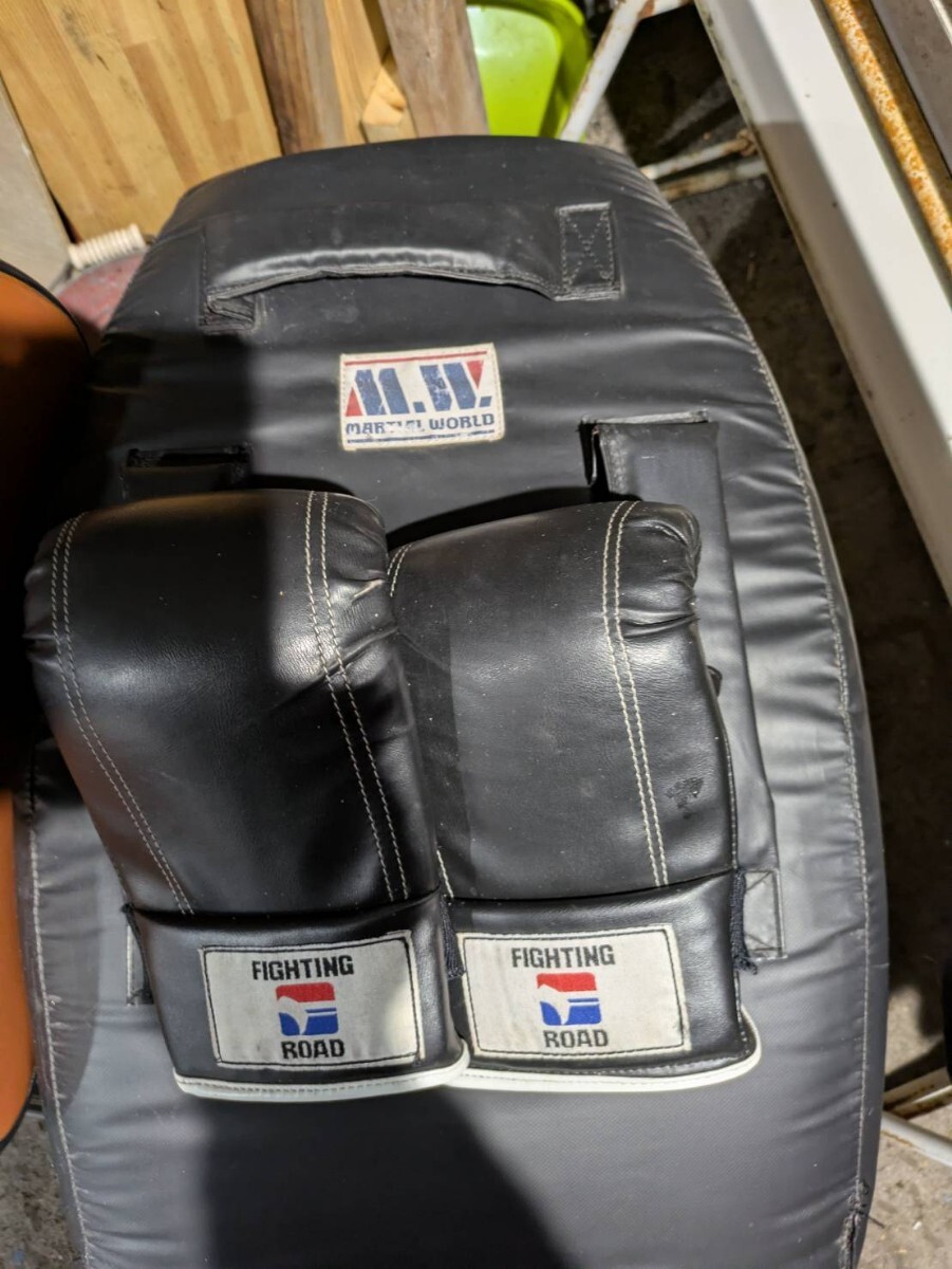 サンドバック表面生地に老化による破れ、小傷あります(破れは良くテーピングで補修されている方がおられますね)生地はダブルの様で、完全に穴が開いてはいません
