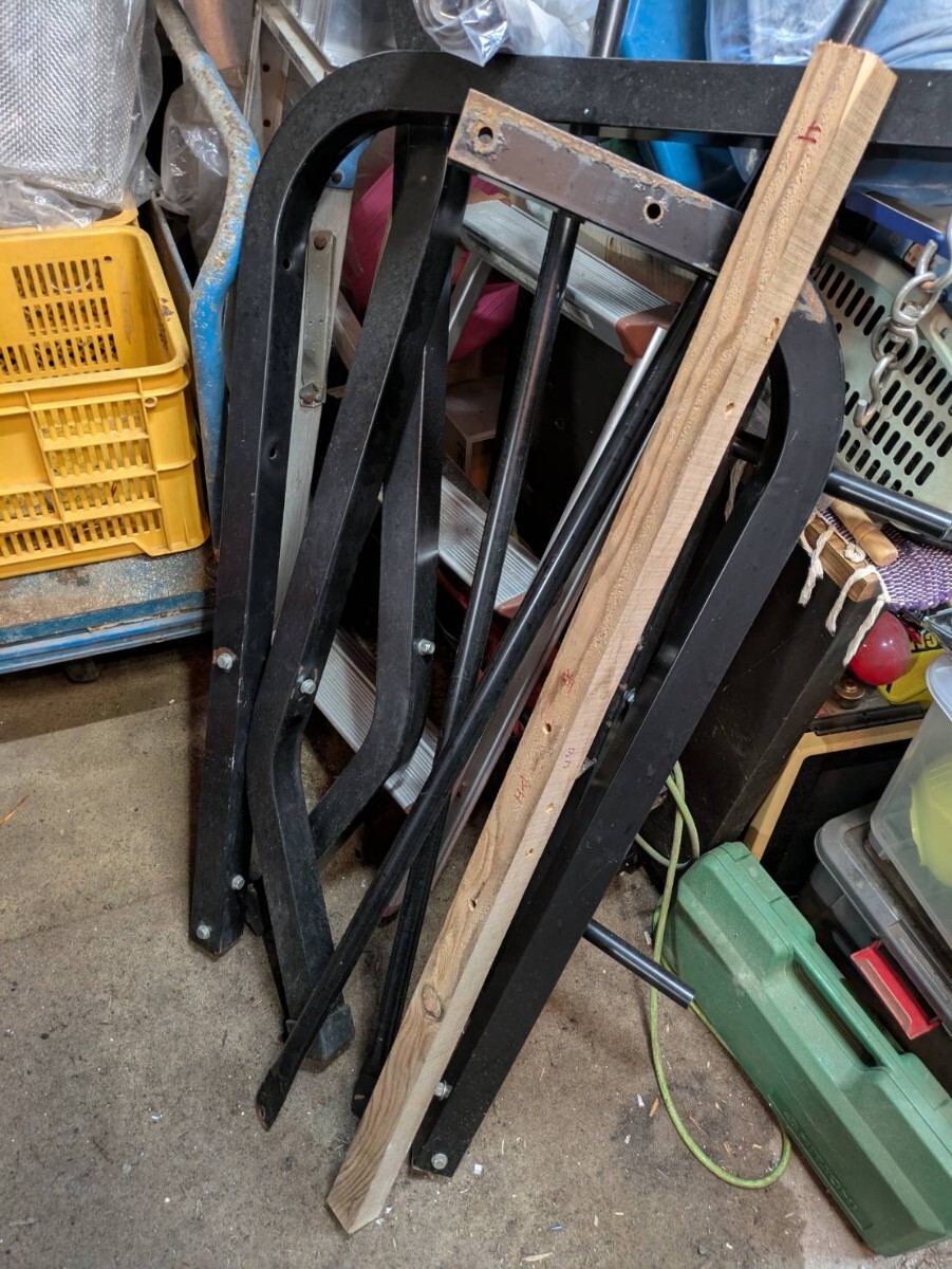 鉄製のジョイントパーツ紛失の為、角木材に穴を開け、応用しています