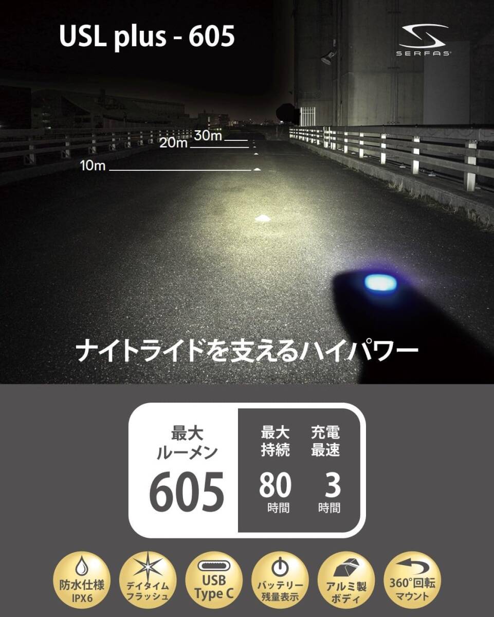 650ルーメン サーファス 自転車用LEDヘッドライト USL PLUS USB Type-C充電式