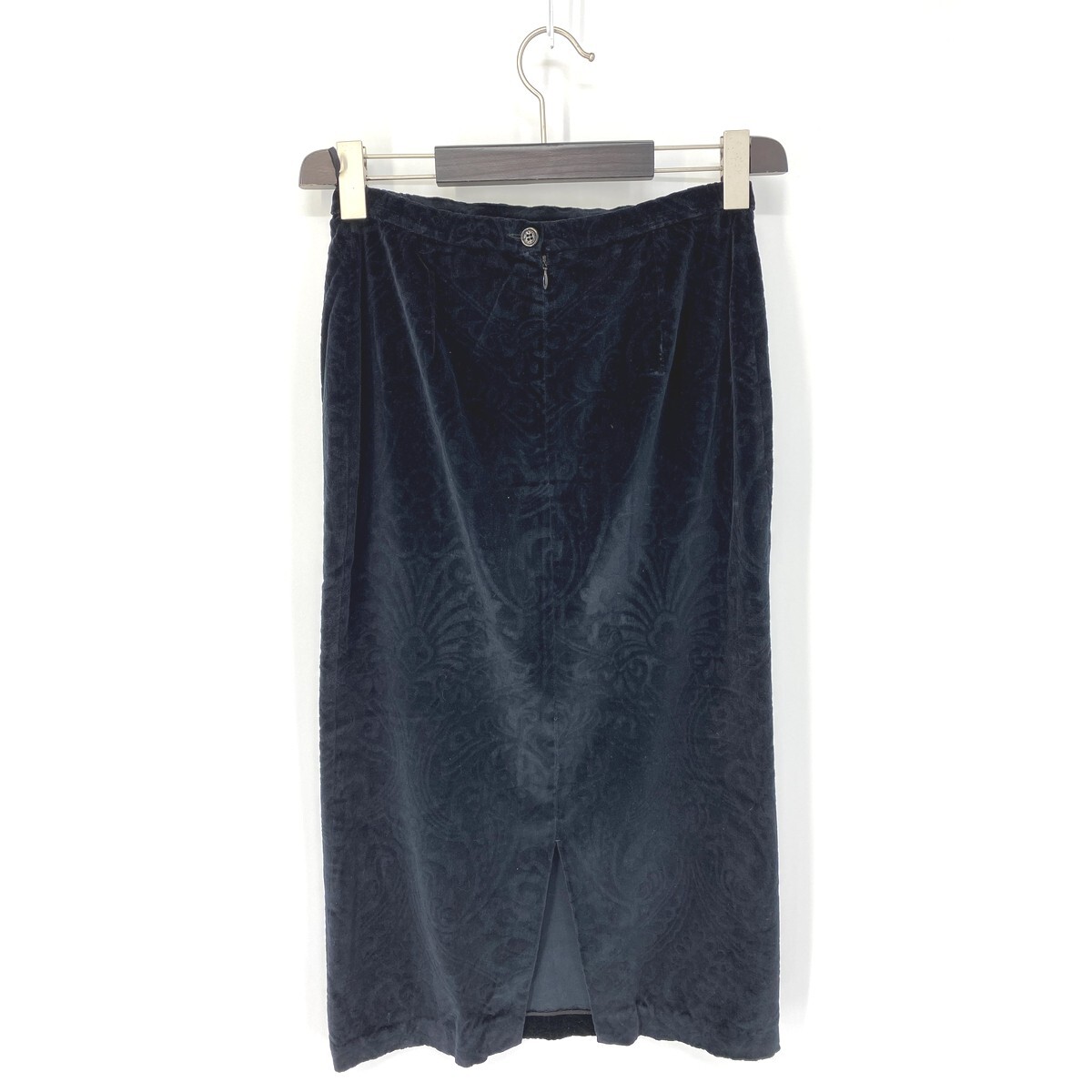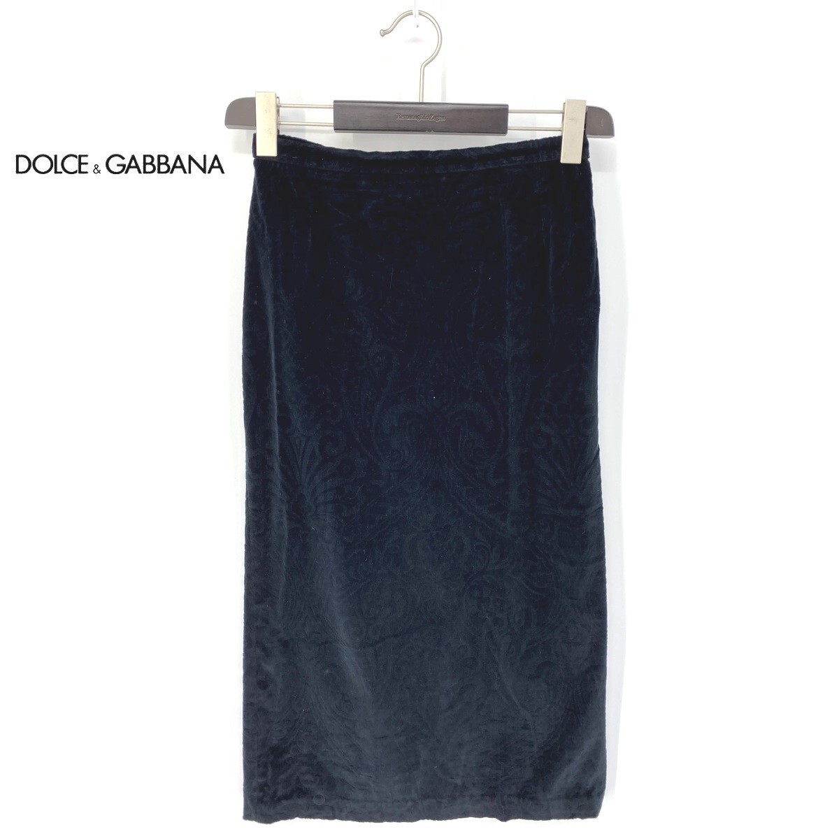 A6746/美品 春夏 DOLCE&GABBANA ドルチェ&ガッバーナ コットン ベロア ベルベット 花柄 総柄 ロング マキシ丈 スカート 42 黒/レディース