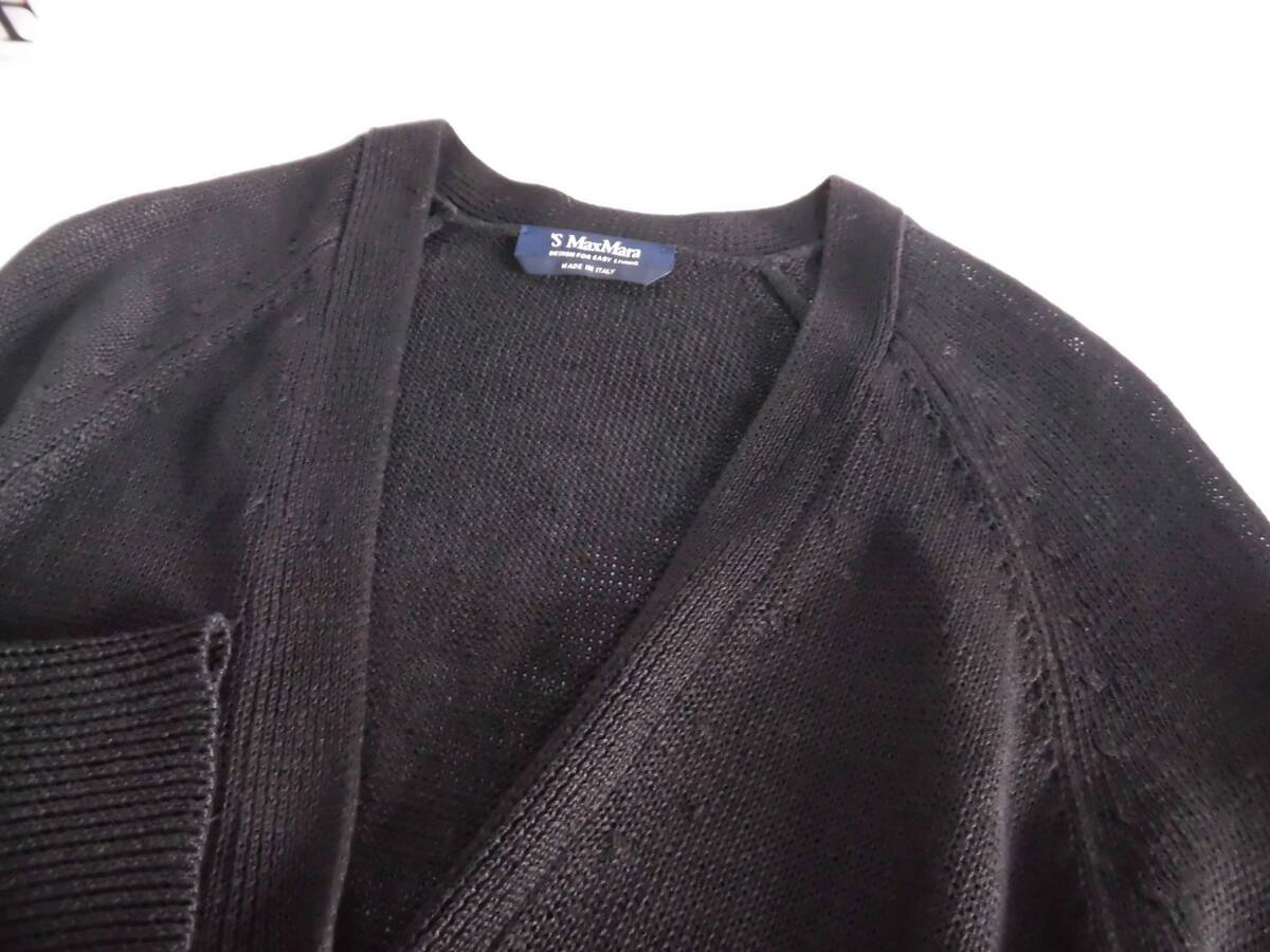 ☀ ’S MaxMaraのコレクションラインのシンプルデザインの黒のカーディ ガン。素材は麻100%のサラッと素材。心地よい肌触りと落ち感あるシッカリ 生地が体系カバーしてくれそう・・・シルエットはVネックの裾窄みライン。 裾と袖口はリヴニットの着やすいウェアです。 着用の少ない美品ですが、ニット製品のリサイクル品をご理解下さる方に。 ===================================== 参考価格 44,000円(税込) |