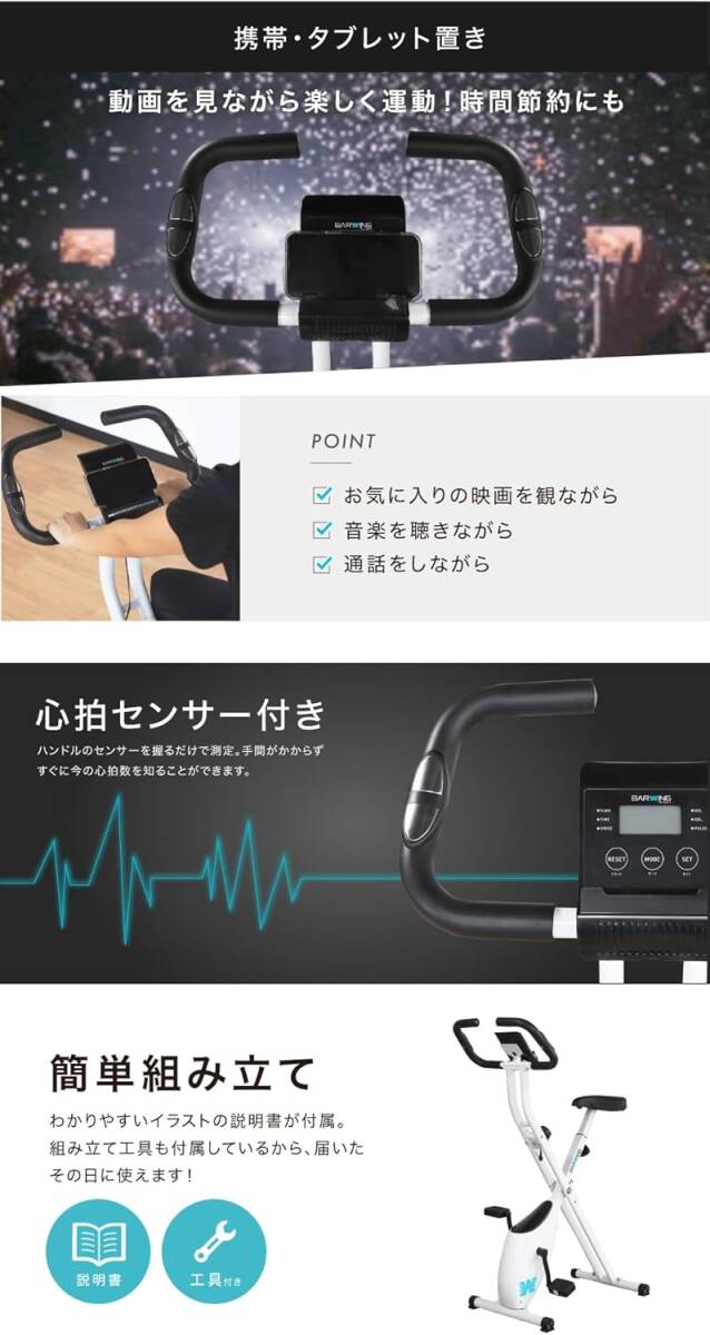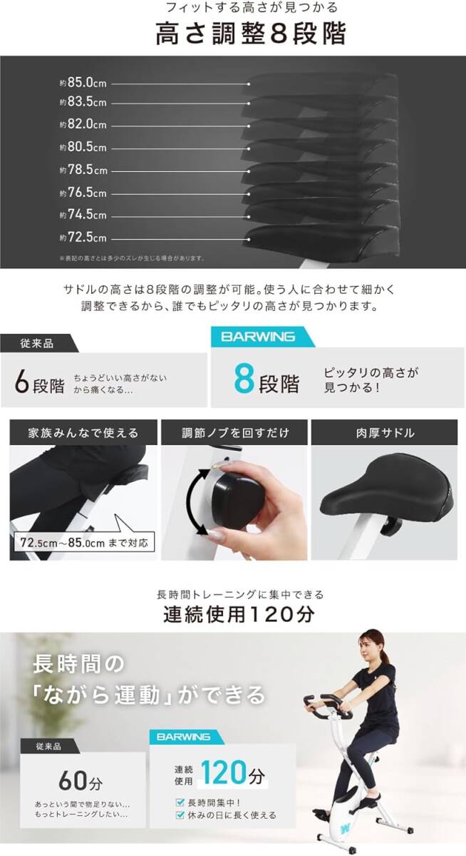 バーウィング フィットネスバイク スピンバイク トレーニングバイク 静音 折りたたみ 組み立て簡単