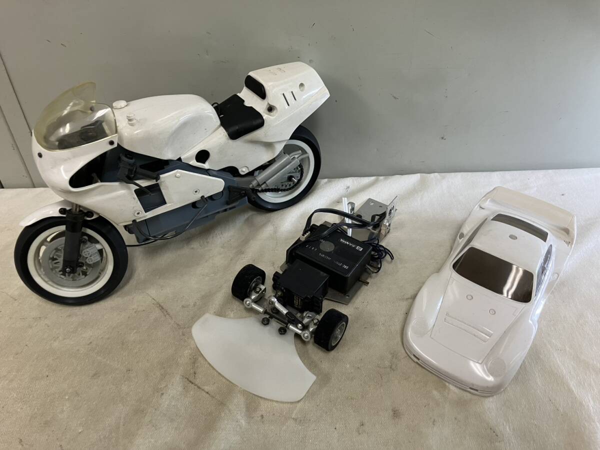 (230)1円〜 詳細不明 ラジコンセット 車 バイク パーツ プロポ など まとめ売り SANWA TAMIYA 他 当時物 未検品 現状品 パーツ取り
