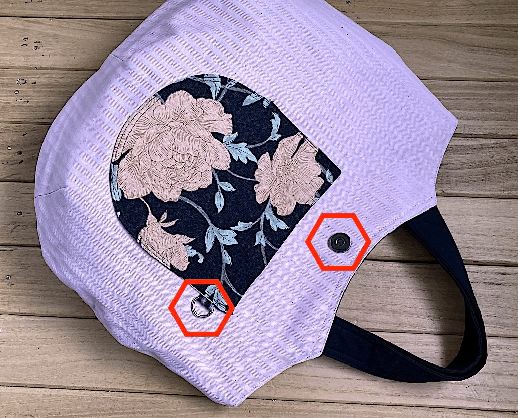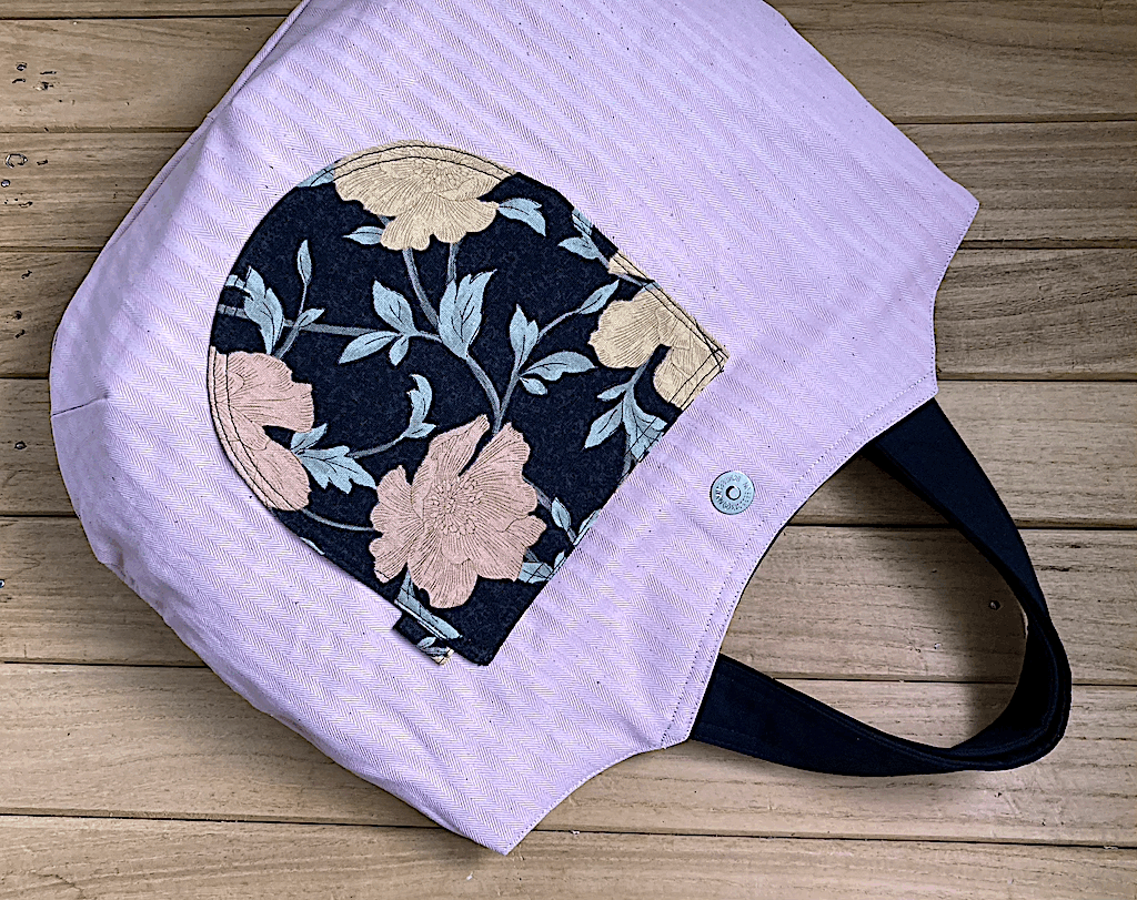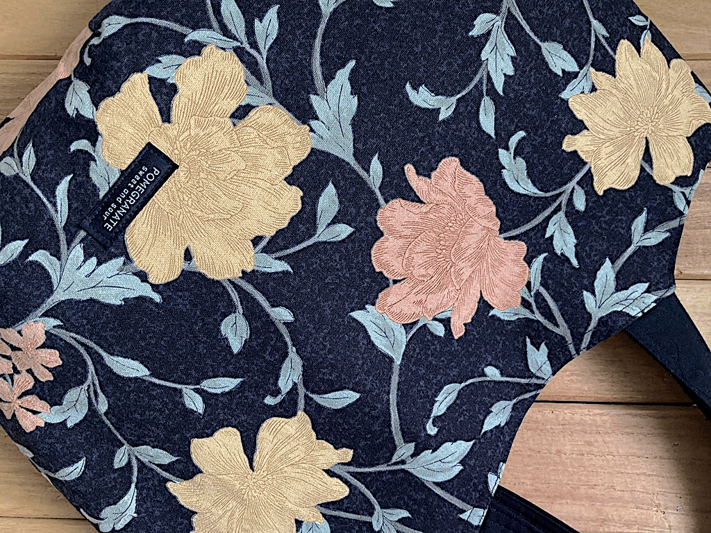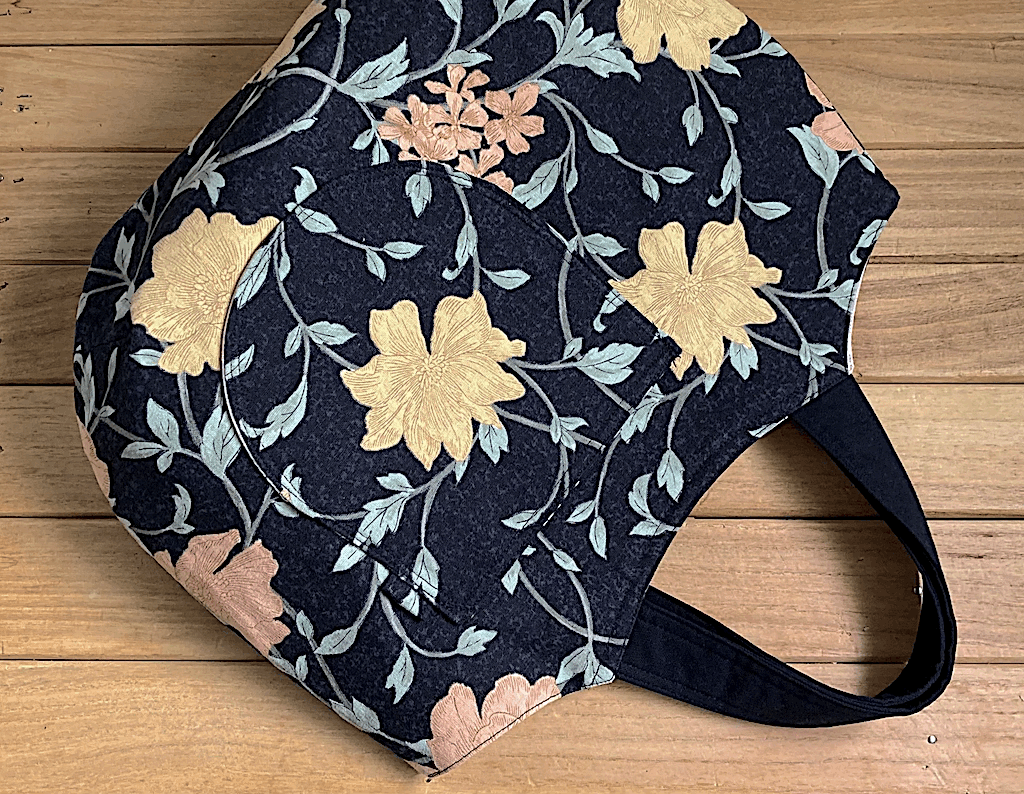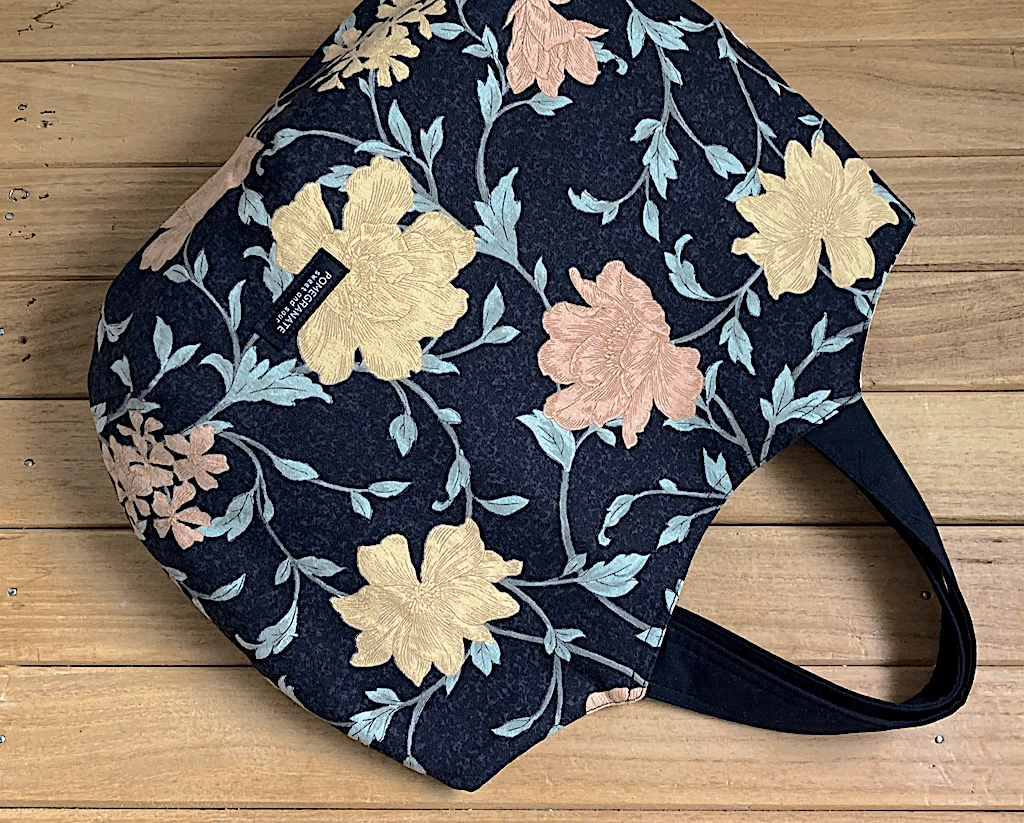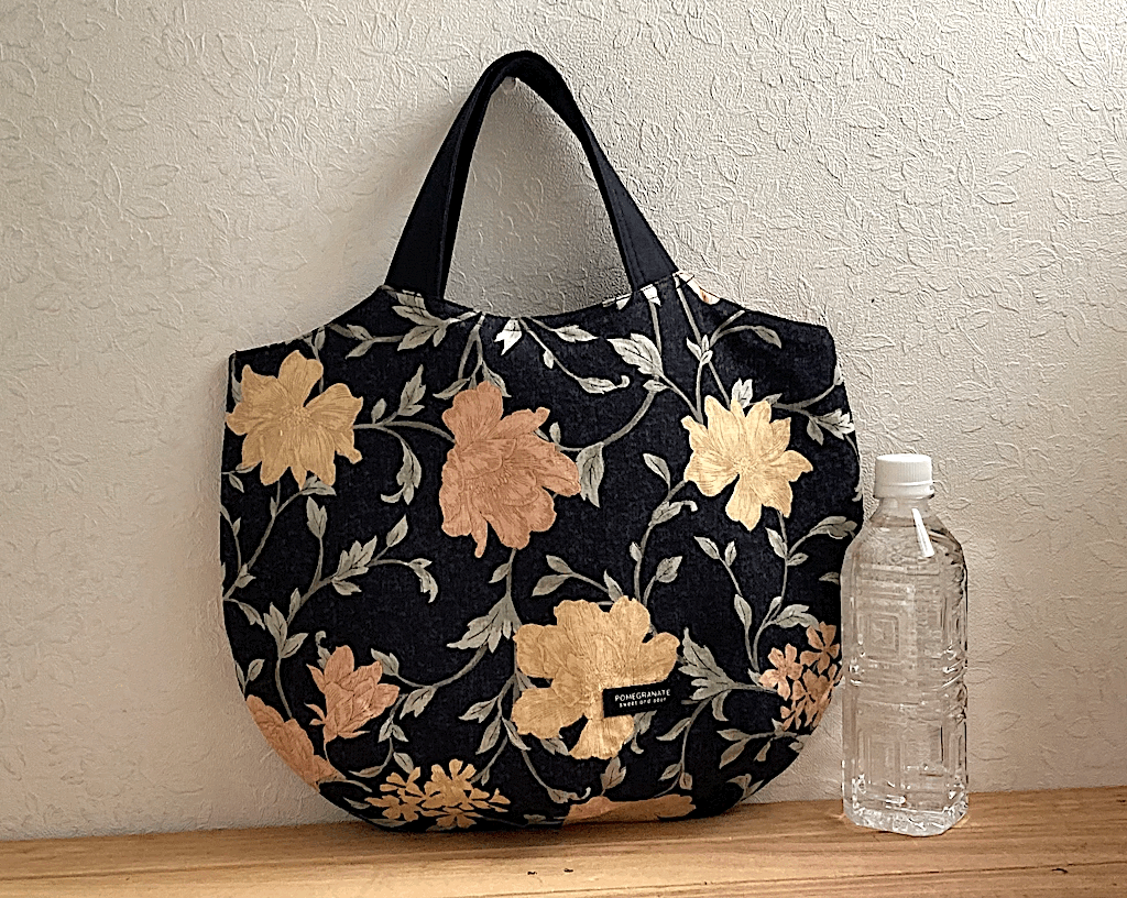 ★ふっくらまるい 手さげバッグ「ロココローズ/ブラック」※表布に厚手接着芯貼付