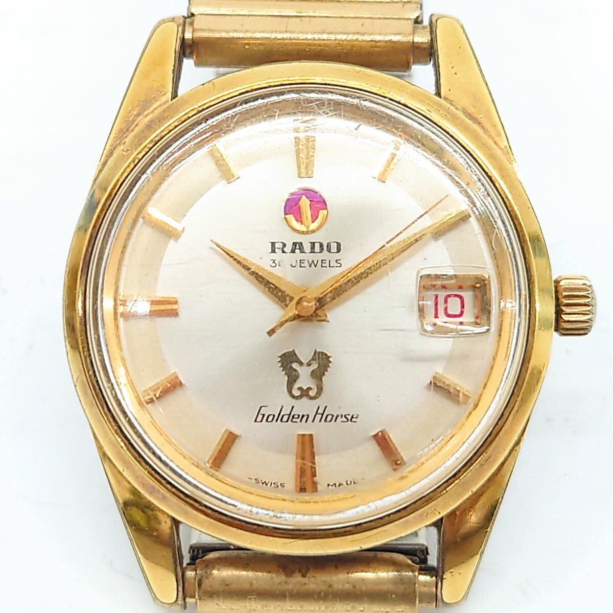 【稼動品】RADO Golden Horse ラドー ゴールデンホース 11674 30石 自動巻き AT タツノオトシゴ 赤デイト アンティーク メンズ腕時計
