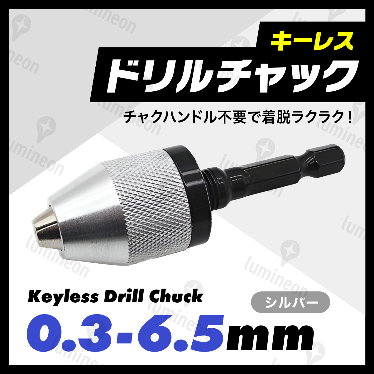 ドリル チャック キーレス 0.3-6.5mm 六角軸 インパクトドライバー アダプター 電動ドライバー 汎用 アタッチメント 先端工具 g008e