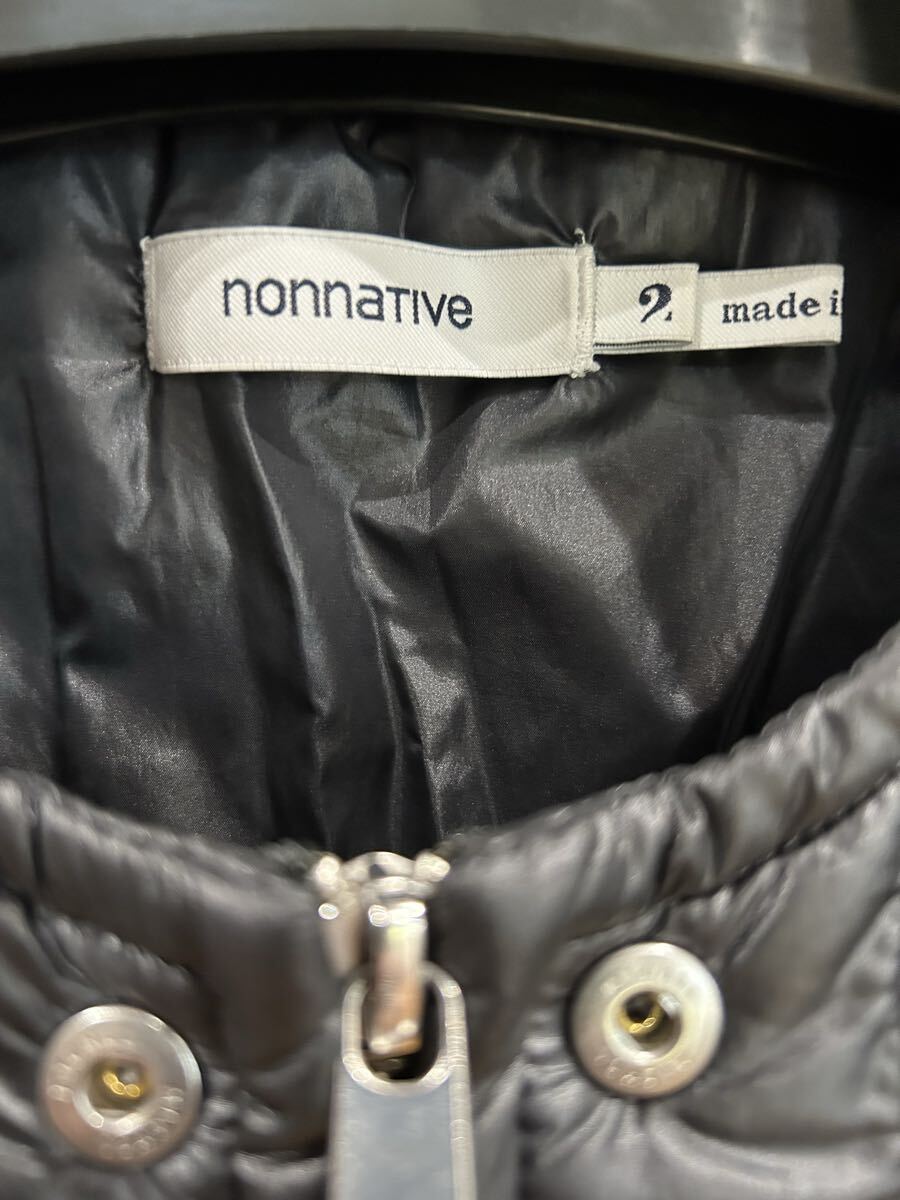 パーカーなどを合わせやすいノーカラー(後半分はリブ)で、スナップでライダース仕様の襟にシルエット調節することも可能です。フロントはボックス、バックはラウンドした裾のデザインもnonnativeらしく秀逸です。