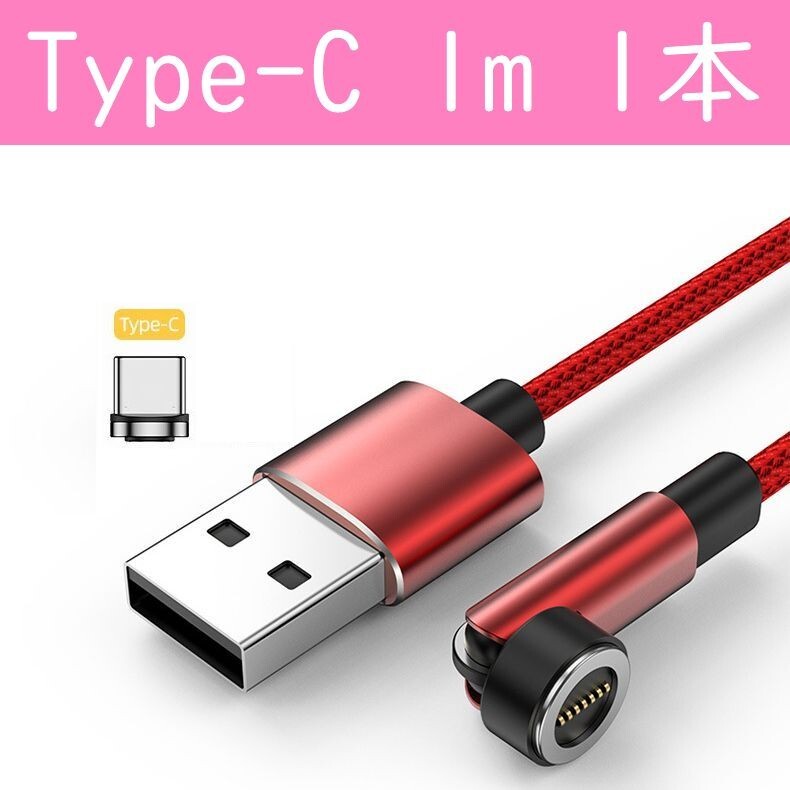 Type-C 1m赤色1本曲るマグネット磁石式USB充電通信ケーブル タイプC