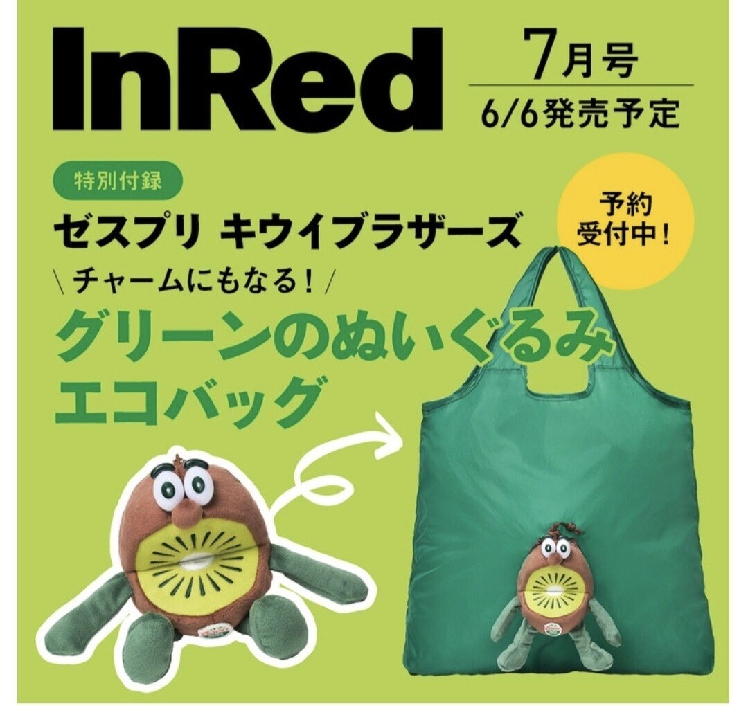 ゼスプリ キウイブラザーズチャームにもなるグリーンのぬいぐるみエコバッグ