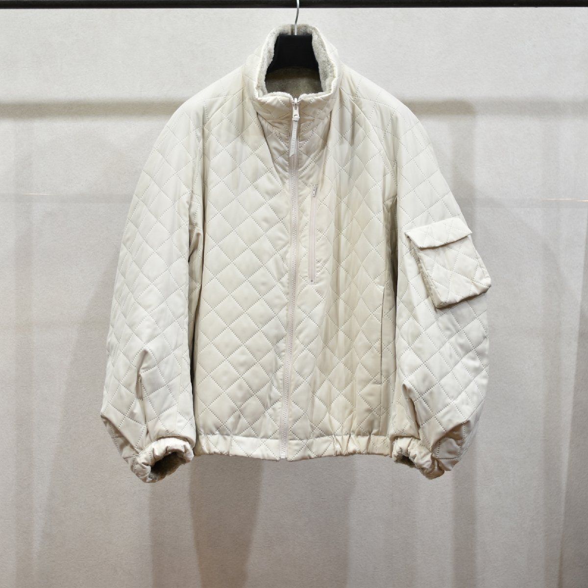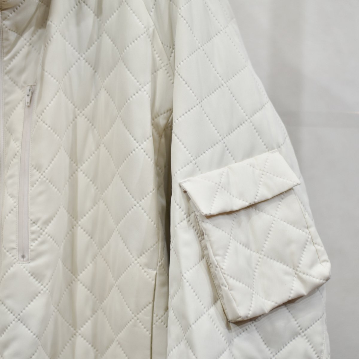 【商品番号】ReSM-cd-outer-0017【商品説明】キルティング素材を使?したリバーシブルハイネックブルゾン。ピンソニックと?われる最新技術を駆使した、超?波圧着で接合する、ステッチレスのキルティング技術。?常に加?条件が厳しいため、?部のスポーツ?品を除いては世間に出回っておりません。津城のキルティングに対して、?のほつれや、中綿の吹き出しがないことと、通常のキルティングでは表現できない独特な趣が特徴です。裏側には短?のパイル?地を使?。ボアに?べて??が短く、軽量かつ?厚すぎないのがポイント。キルティングとボアのリバーシブルですが、?常にライトな着?地で、なおかつ着膨れも軽減されています。【商品詳細】品番 : LB23AW-BL03-PSKサイズ : 1 (裄丈92cm 身幅80cm 着丈(前)71.7cm (後)73.7cm)カラー : アイボリー素材 : ポリエステル100%素材 (ファー) : アクリル60% 綿40%素材 (パーツ) : 山羊革【商品状態】Aランク : タグ付きや、未使用に近い商品※こちらの商品は、【返品不可】となっております
