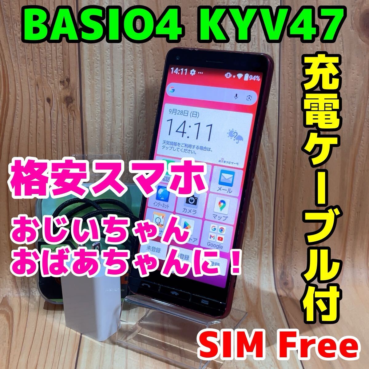 バッテリー良好 basio4 simフリー 本体 32gb ワインレッド kyv47