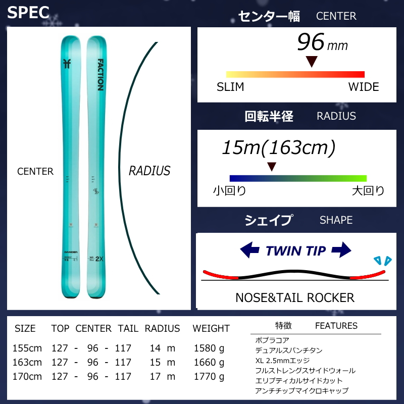 ○[155cm/96mm幅]23 FACTION Dancer 2X/定価¥102300