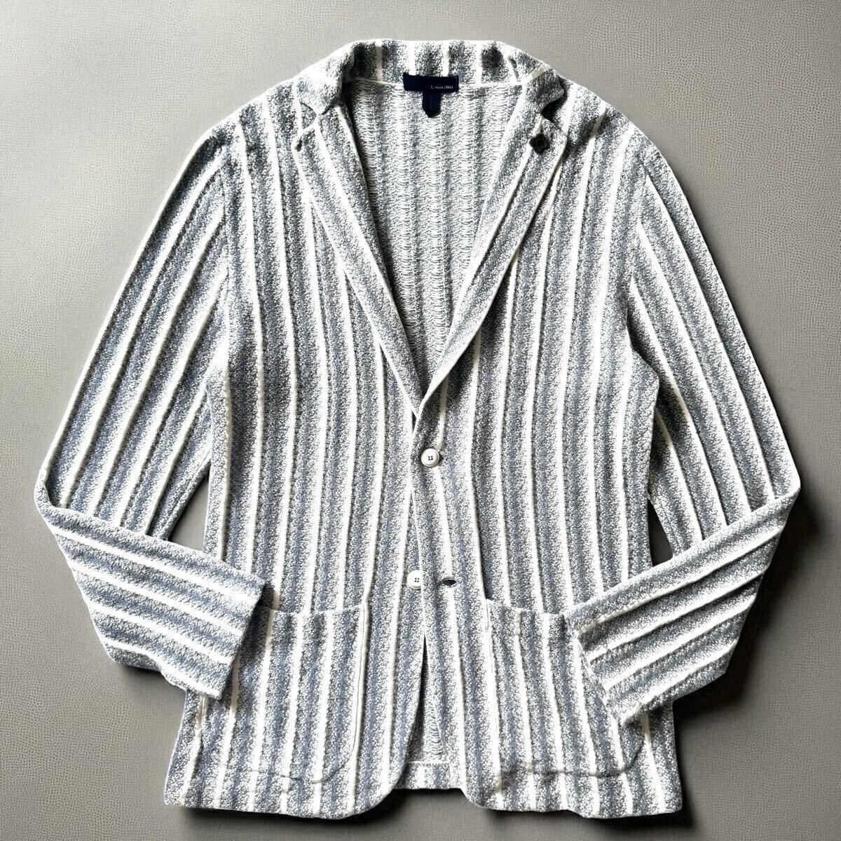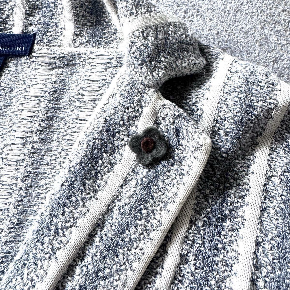 左ラペルを飾るブートニエールが洒脱感をプラス