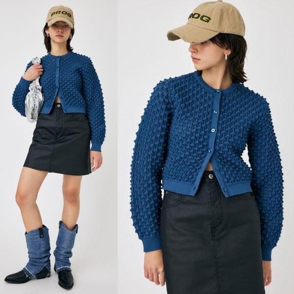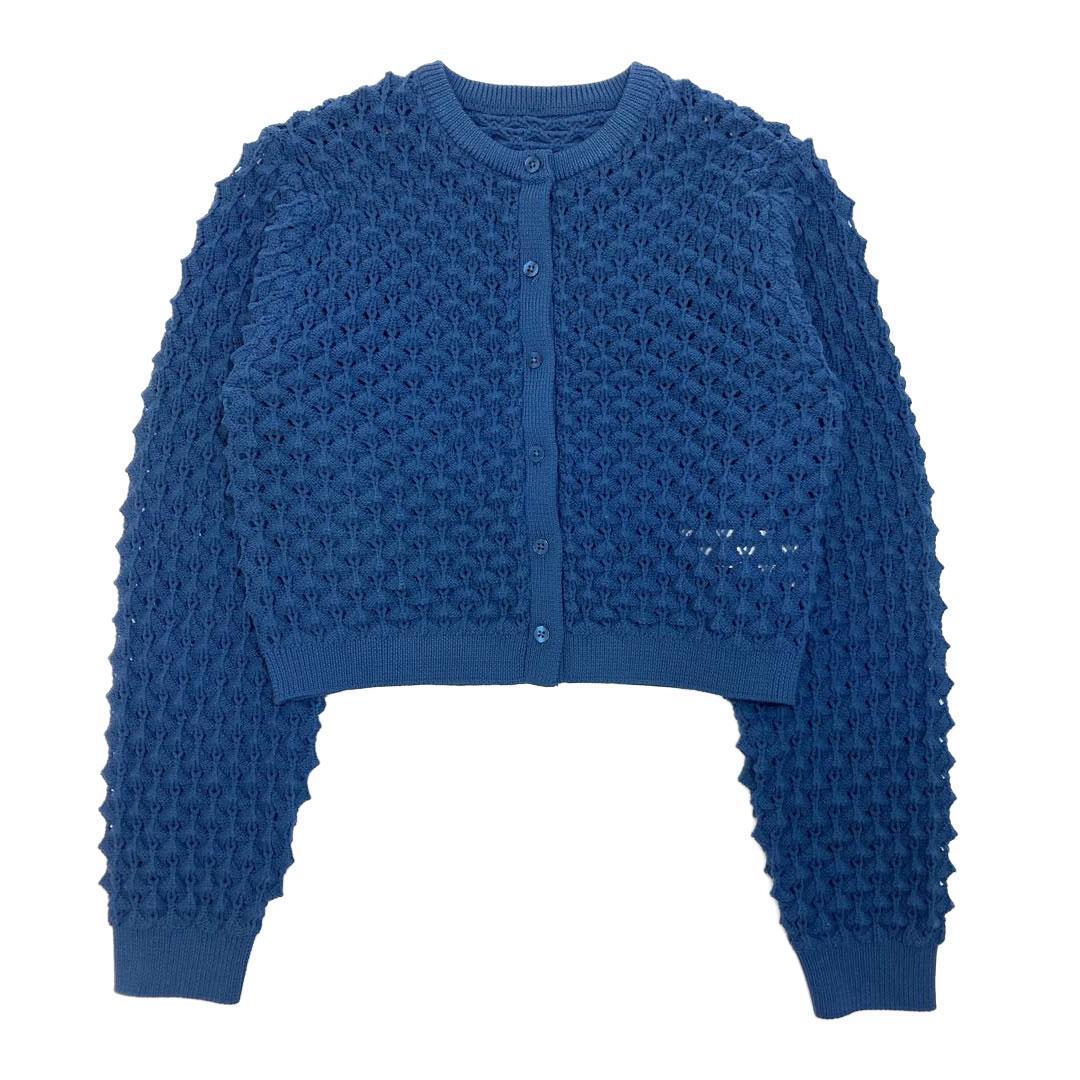 トゲトゲとした立体的な編み地がキャッチーなカーディガントップス。