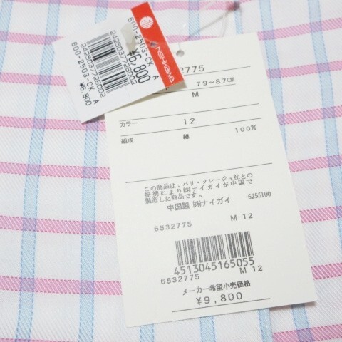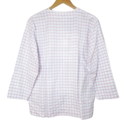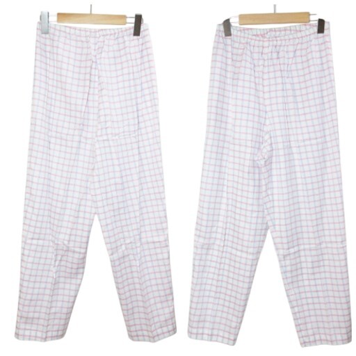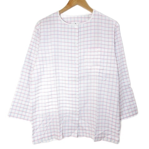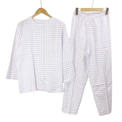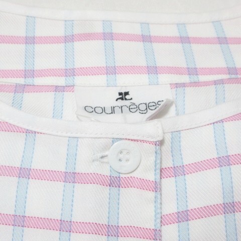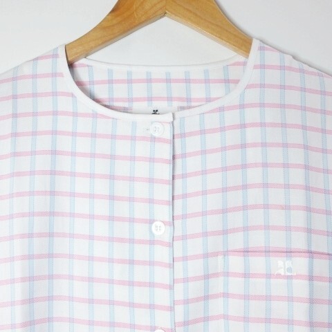 未使用品 クレージュ courreges タグ付き ナイトウェア パジャマ 長袖 ロングパンツ 西川 チェック ノーカラー ロゴ刺? M 白 ピンク 青