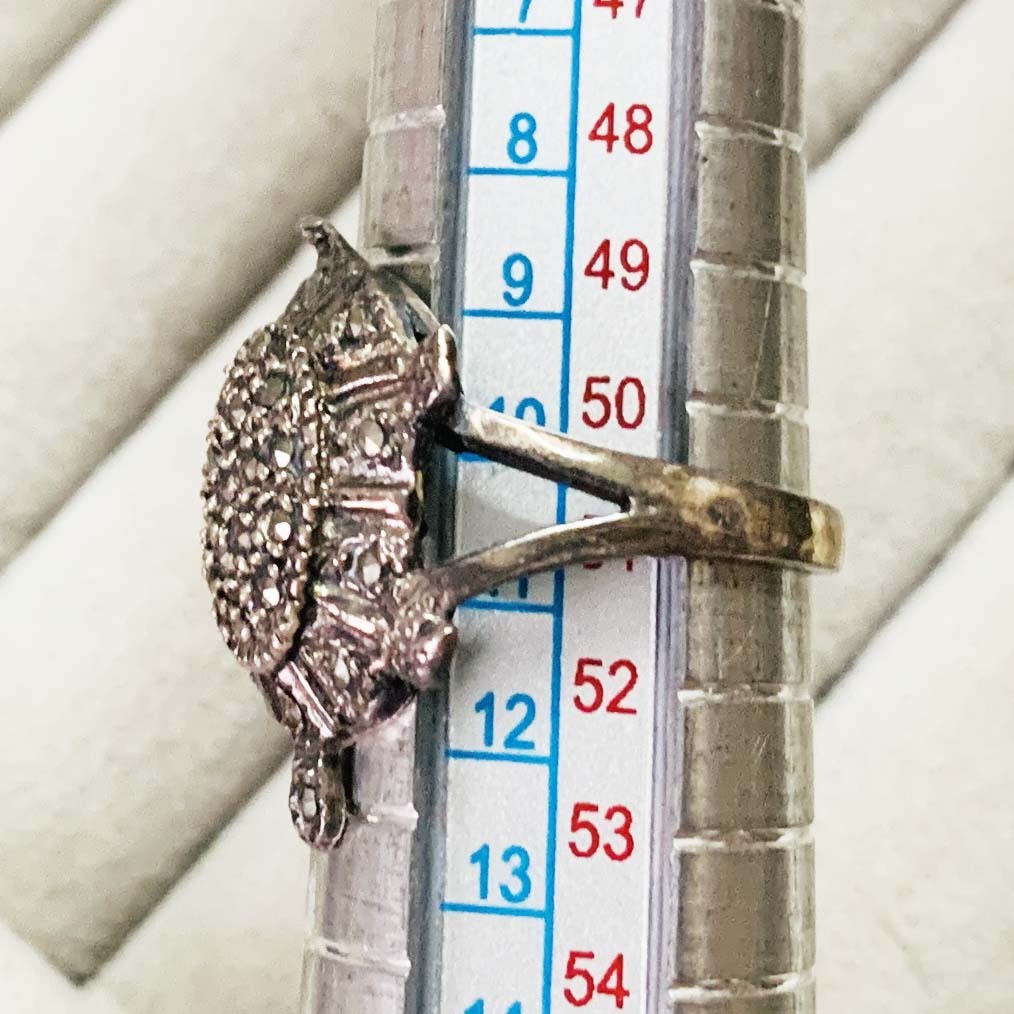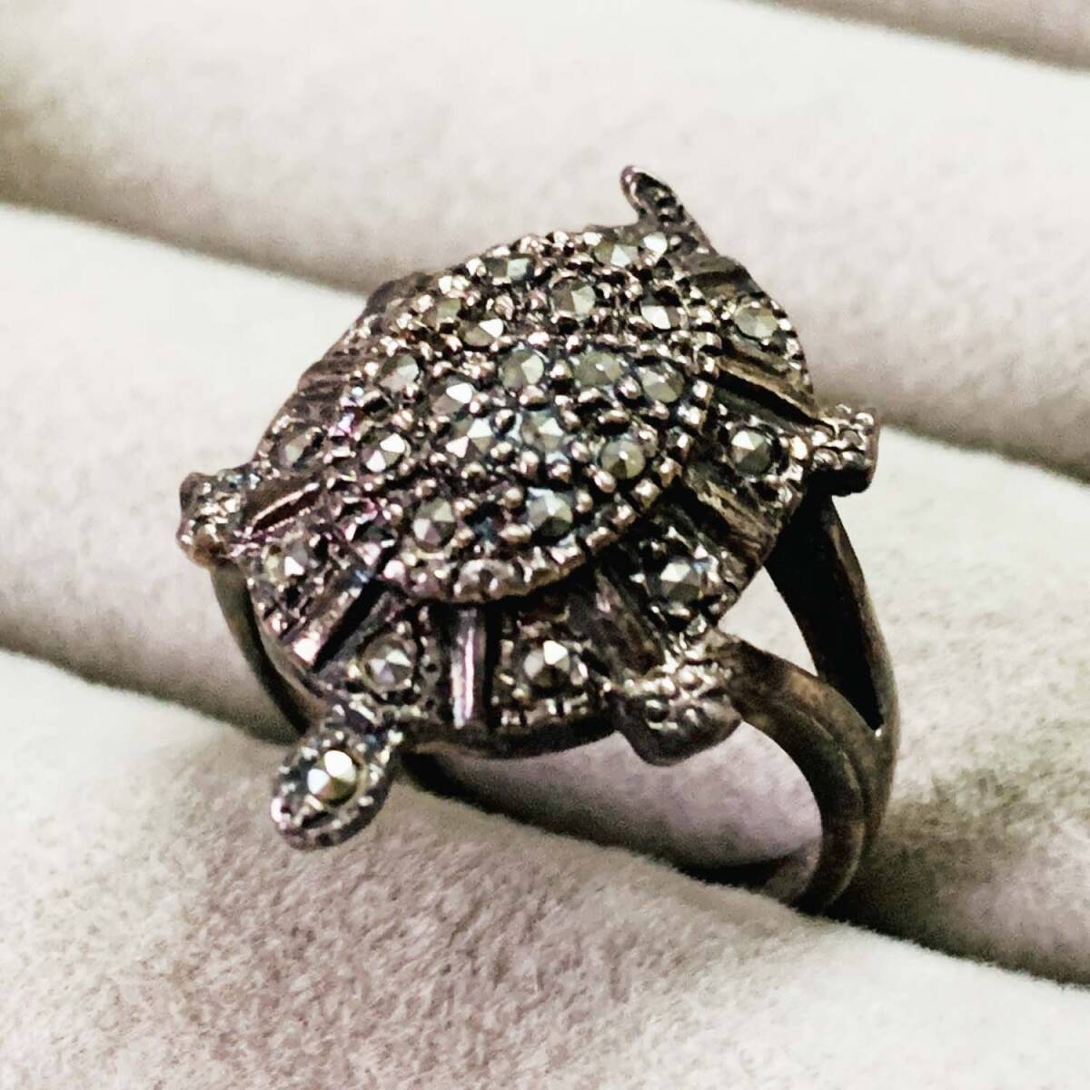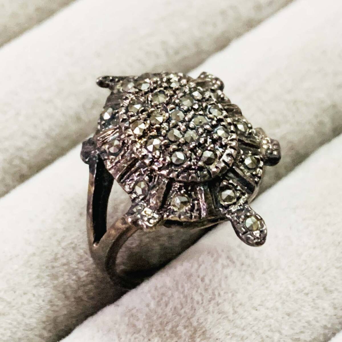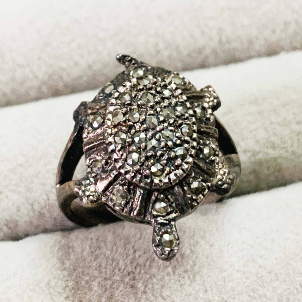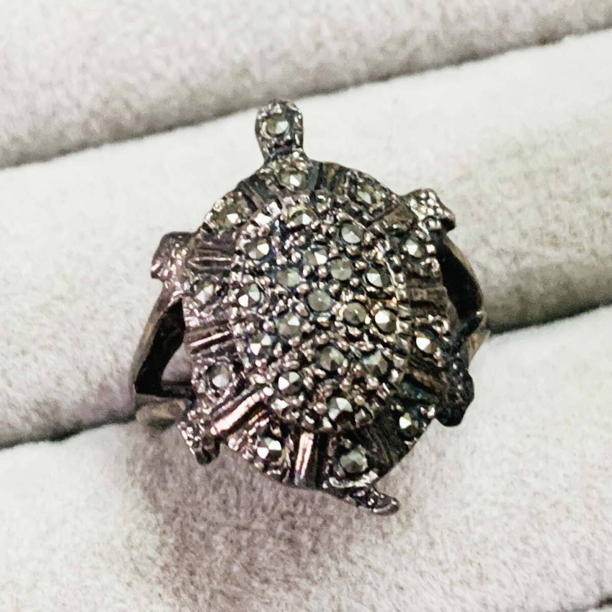 ヴィンテージ 天然マーカサイト 亀ちゃんのモチーフ 925シルバー銀製 指輪リング サイズ約#11 No.S500