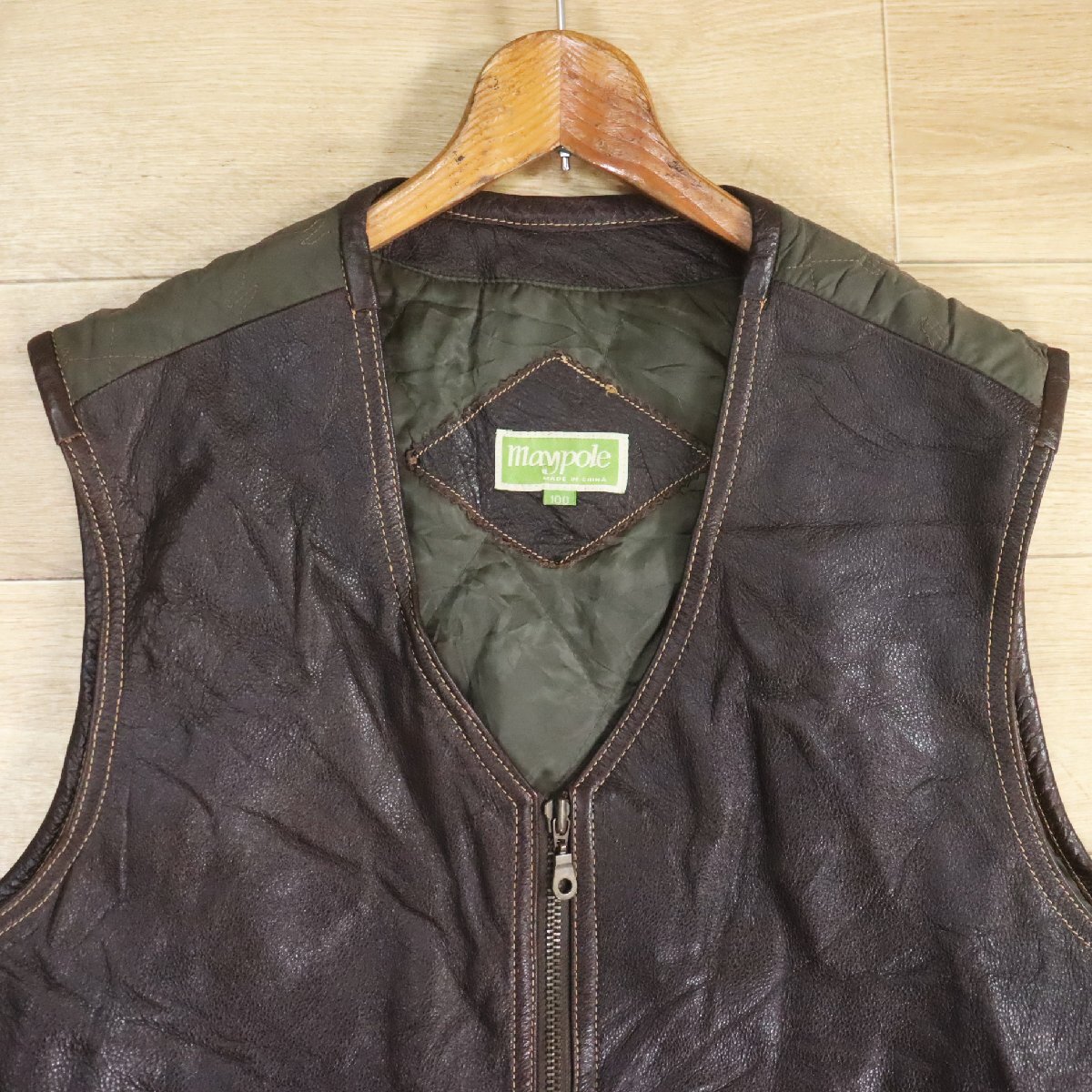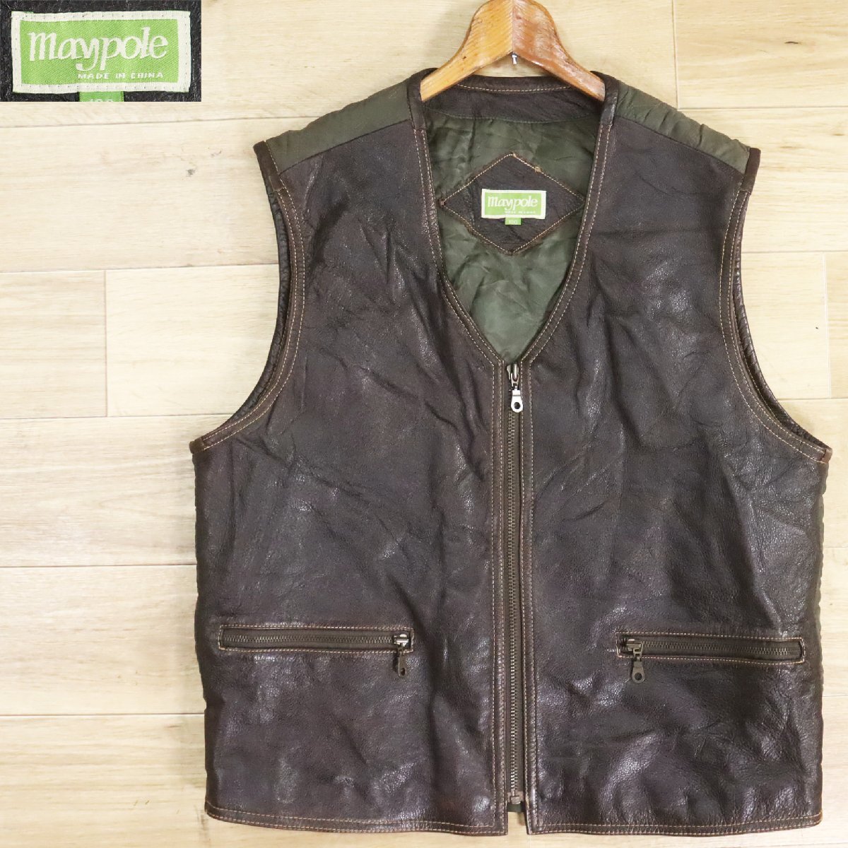 X4Y/Y7.23-1 Maypole メイポール レザーベスト  本革 レザージャケット 革ベスト キルティング 切り替え バイカー メンズ