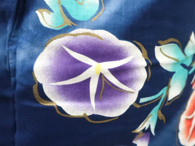 リサイクル商品ではございますが、大変良い状態のお品です。 地色は、青色です。 1枚目の画像が近いお色かと思われます。 素材は綿です。 |