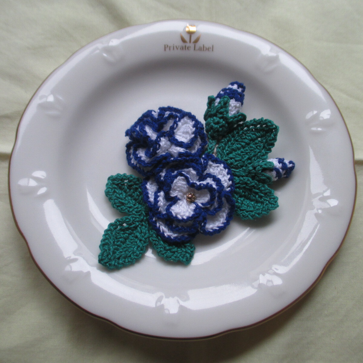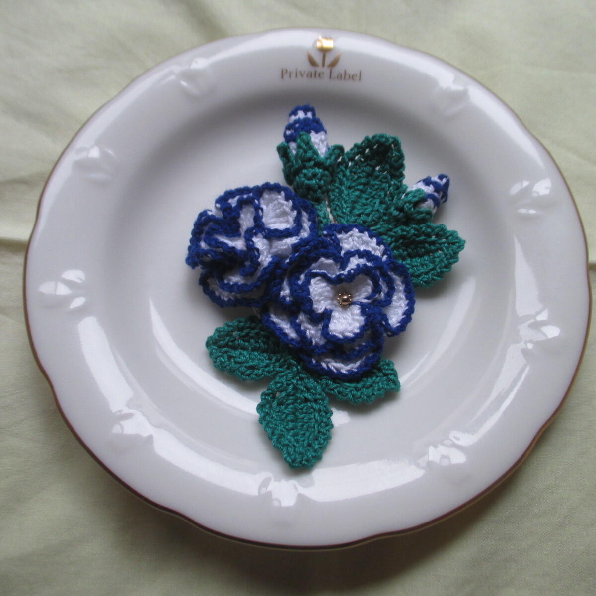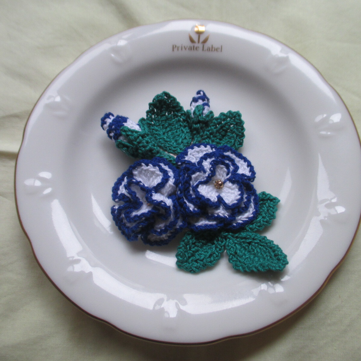 ハンドメイド☆レース編み☆トルコ桔梗のコサージュ、ブローチ