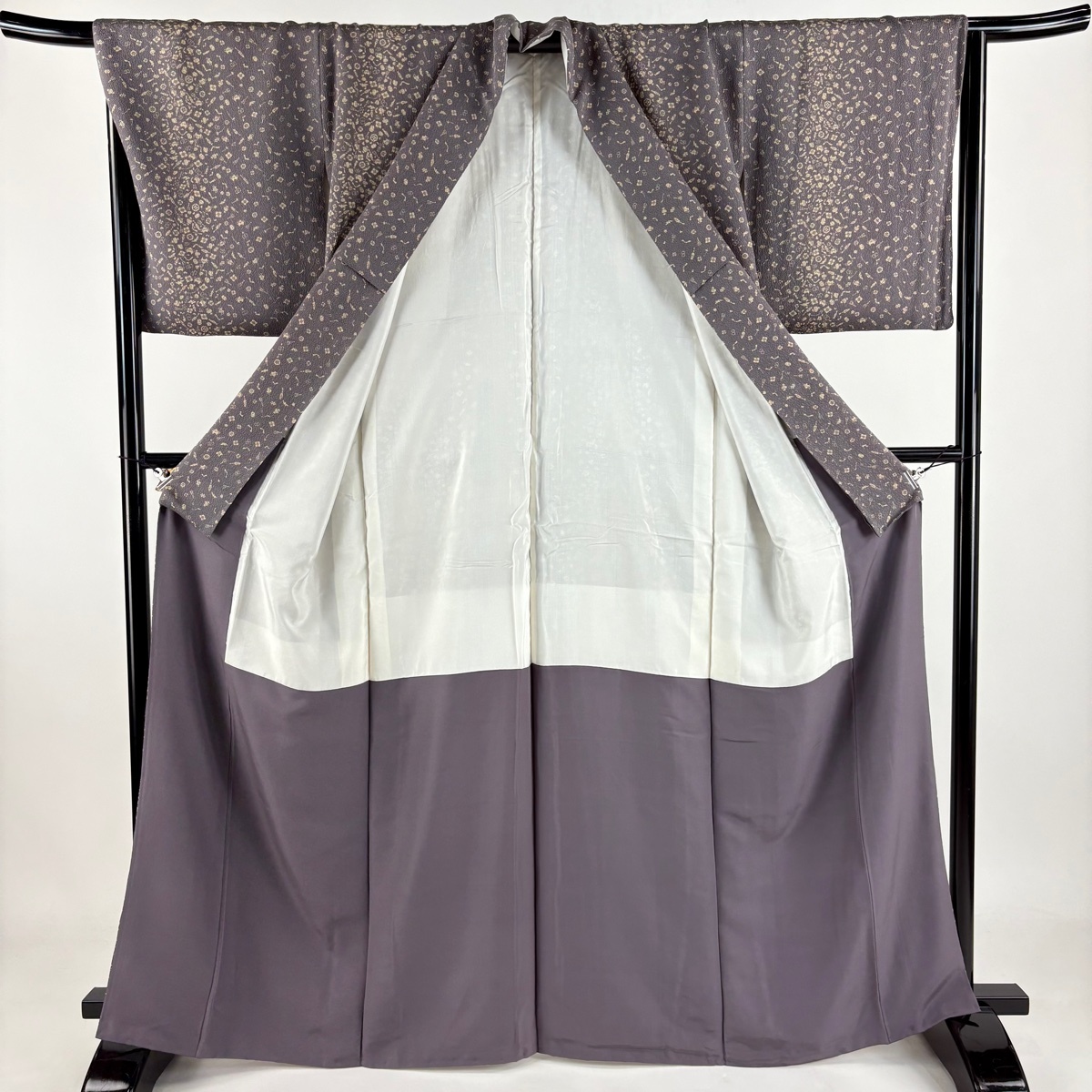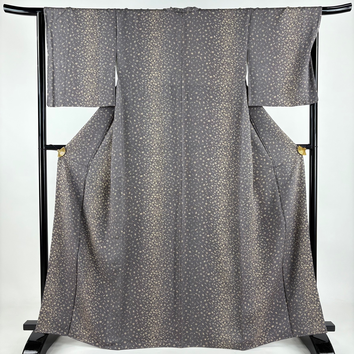 | 小紋 秀品 宝尽くし 花菱 縮緬 ぼかし 灰紫 袷 身丈166 裄丈66 M 正絹 【中古】 |