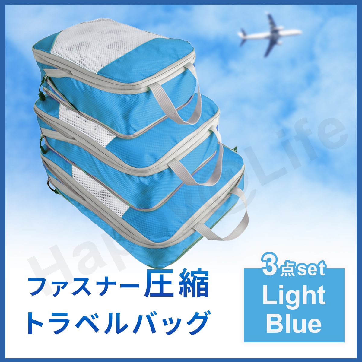 ファスナーをしめるだけで簡単圧縮! 圧縮バッグとして一家に一つは欲しいトラベルポーチ3点セット(S,M,L)