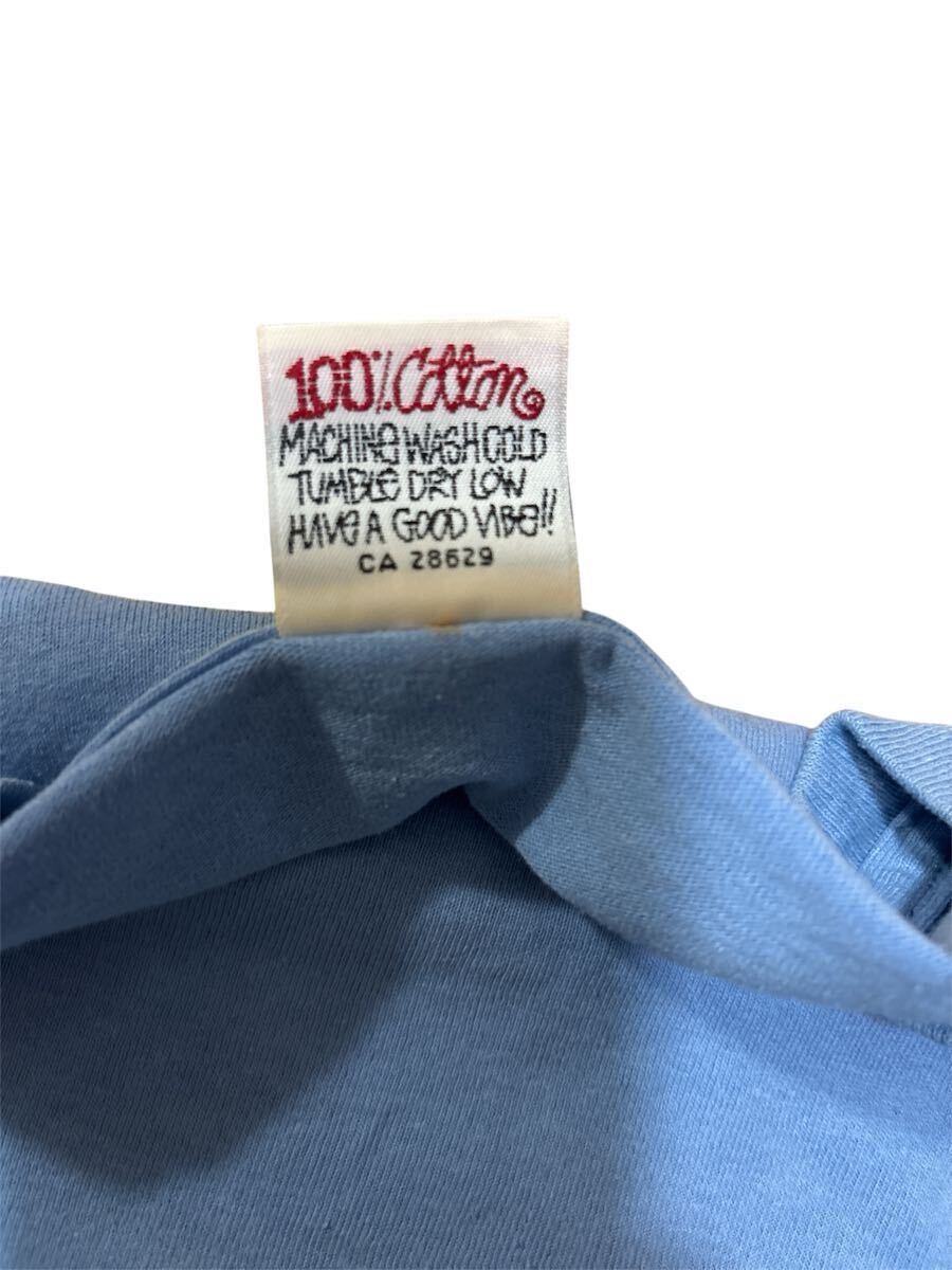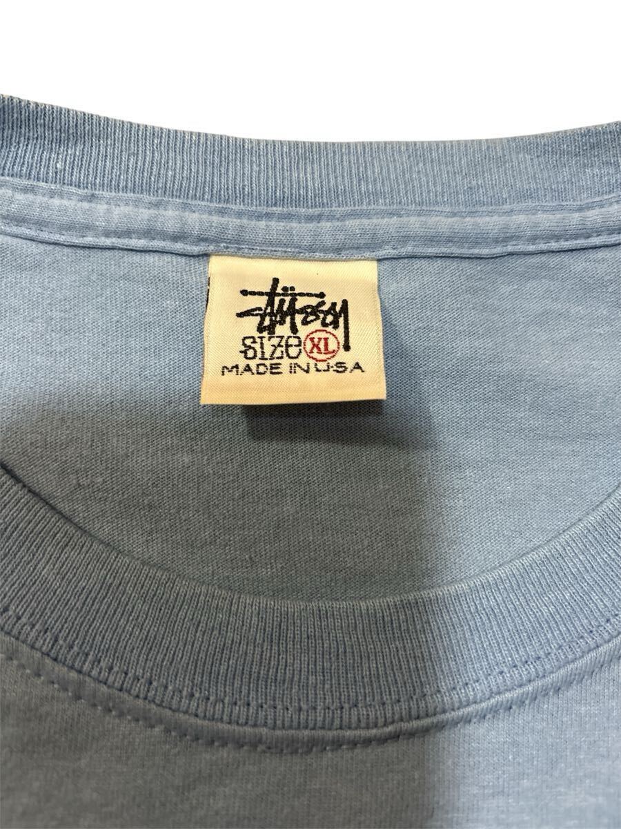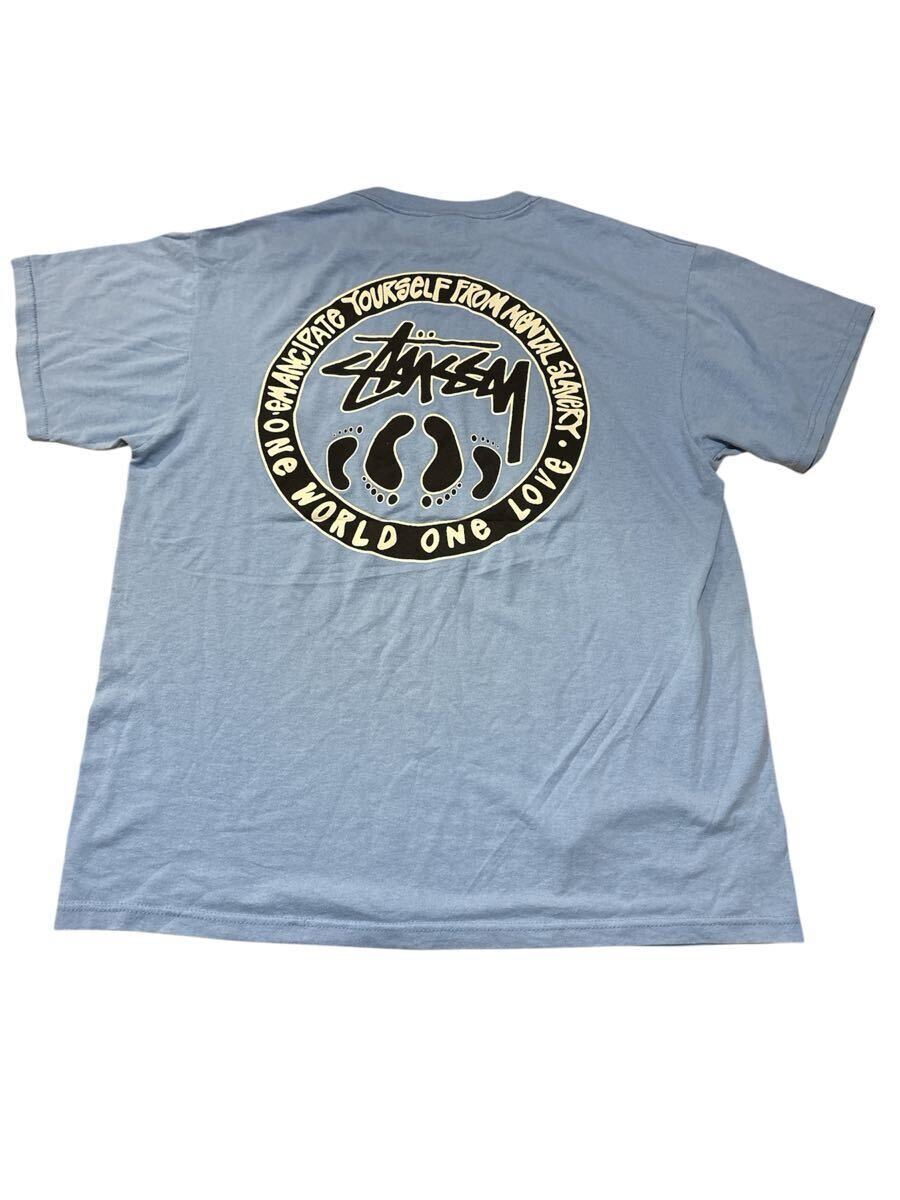 STUSSY(ステューシー)のヴィンテージTシャツになります。フロントとバックに「WORLD ONE LOVE」メッセージと足跡モチーフがプリントされた希少なデザイン。人気の白タグ・USA製です。