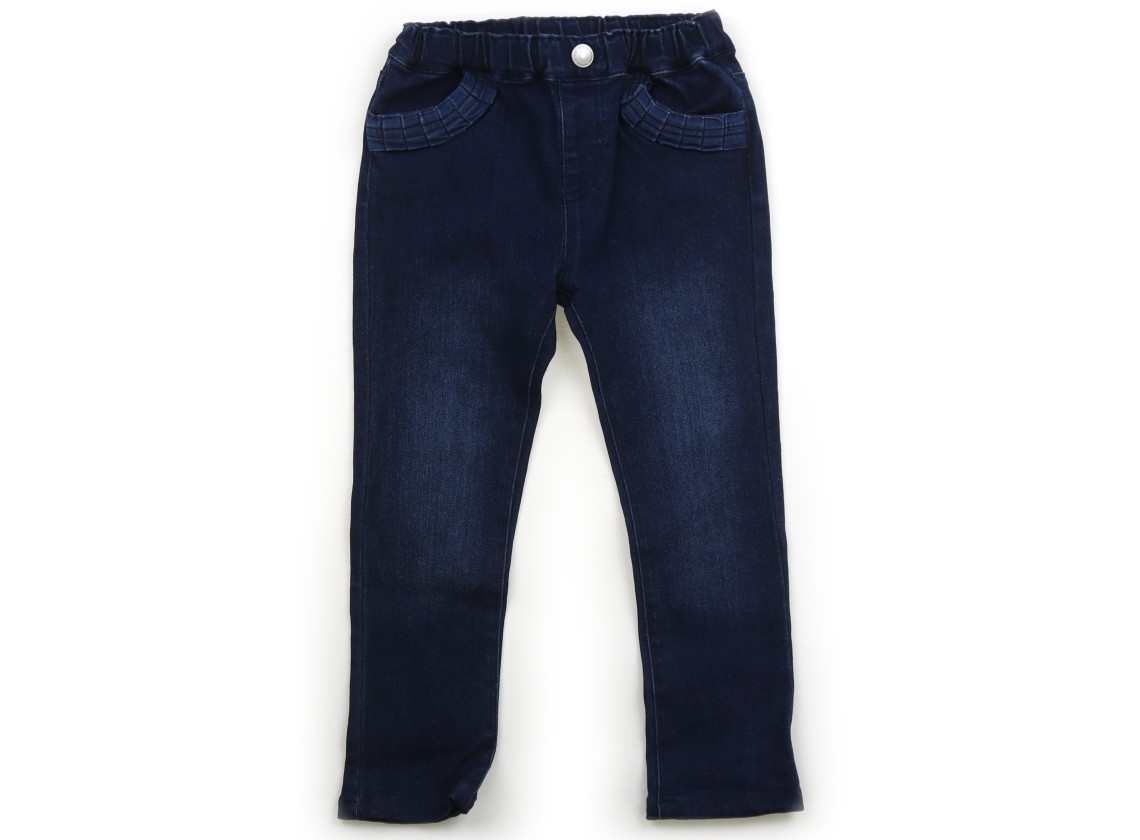 ストレッチデニム。張りがあります。ウエストは総ゴムで、シワ部分に色褪せがあります。