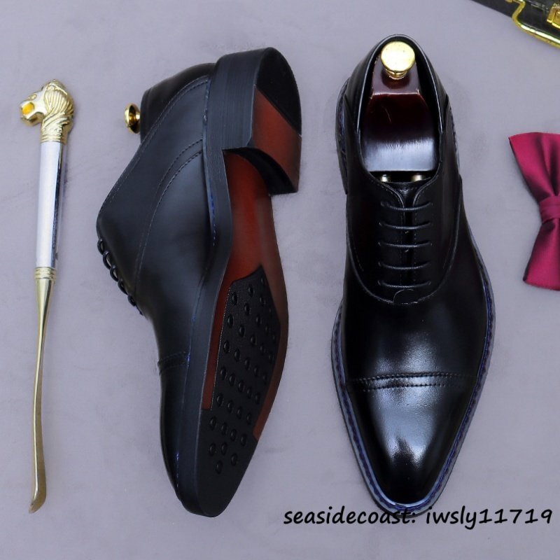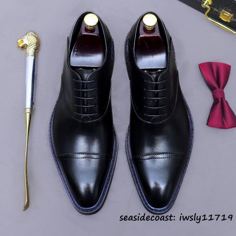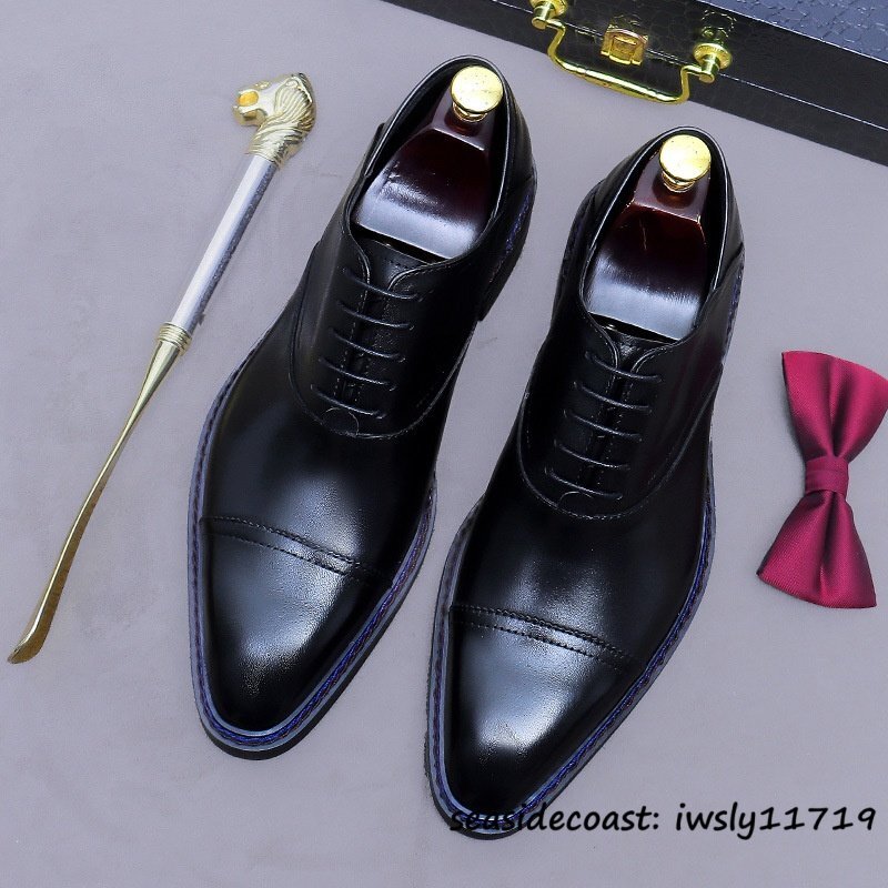 定価9万超◆最高級 メンズシューズ 本革 ビジネスシューズ 新品 超希少 牛革 レザーシューズ 職人手塗仕上げ 紳士靴 革靴 ブラック 26.5cm