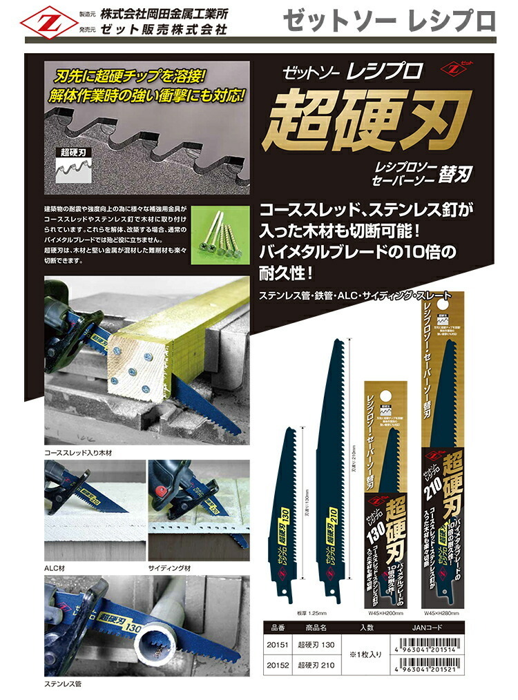 岡田金属工業所/ゼットソー レシプロ替刃 超硬刃 130 20151