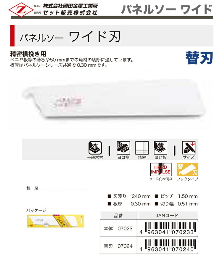 岡田金属工業所/ゼットソー パネルソー ワイド 替刃 7024