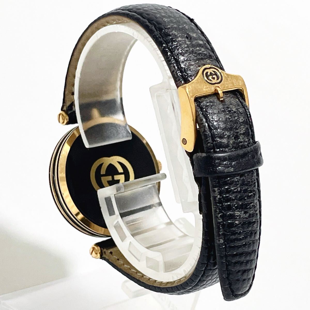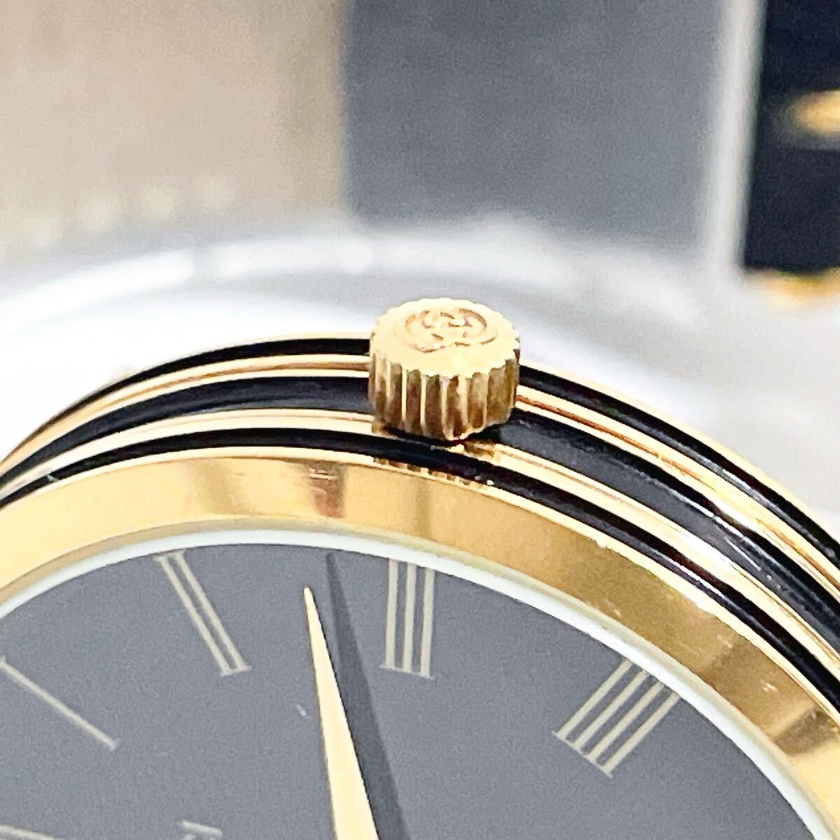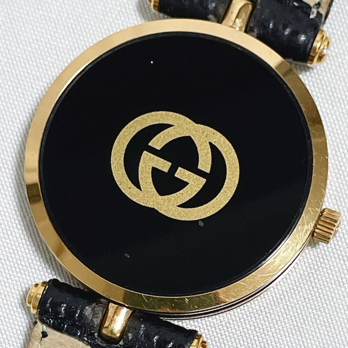 美品 稼働品 GUCCI グッチ 2000M シェリーライン QZ 腕時計 黒文字盤 ブラック×ゴールド GG インターロッキング 純正ベルト
