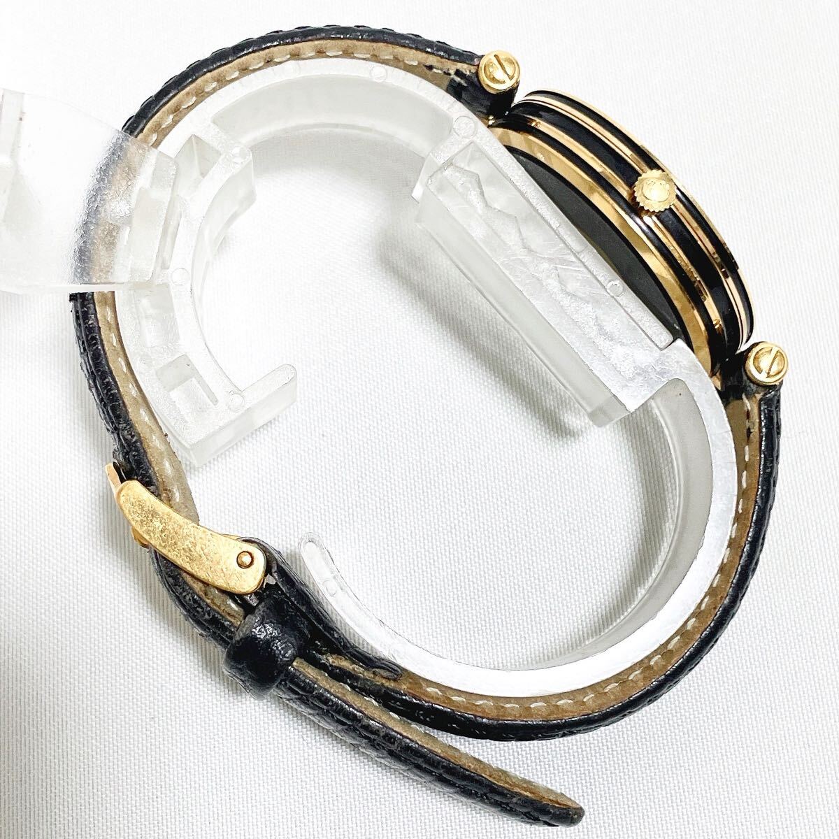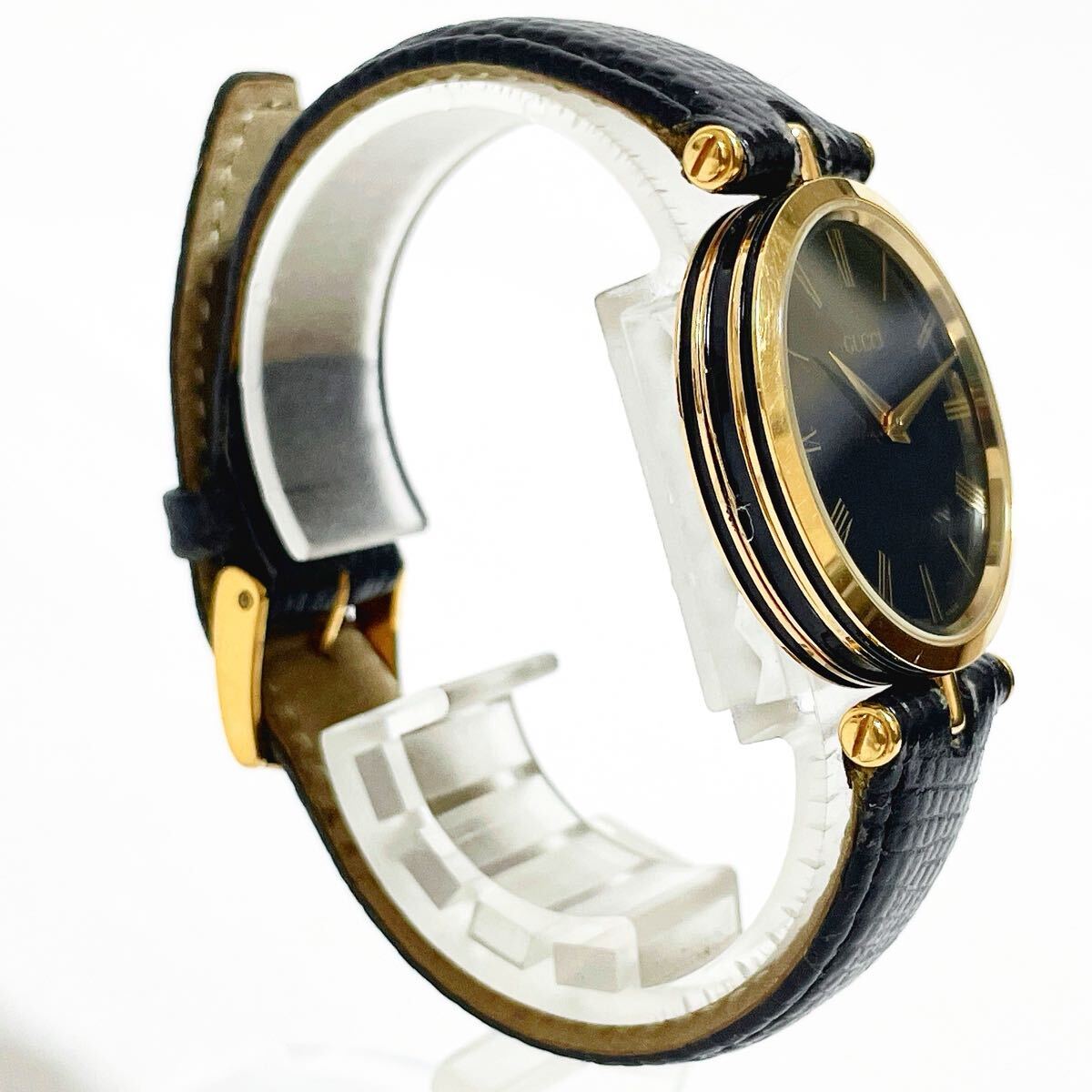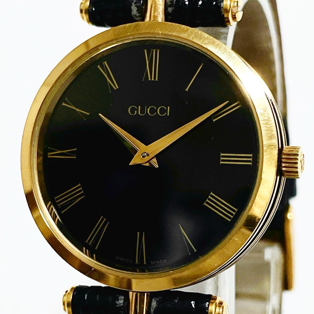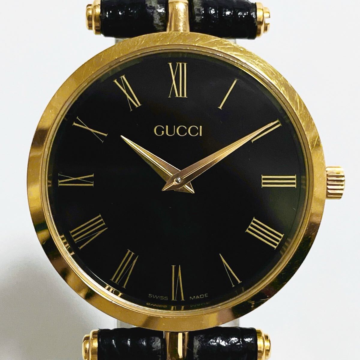美品 稼働品 GUCCI グッチ 2000M シェリーライン QZ 腕時計 黒文字盤 ブラック×ゴールド GG インターロッキング 純正ベルト