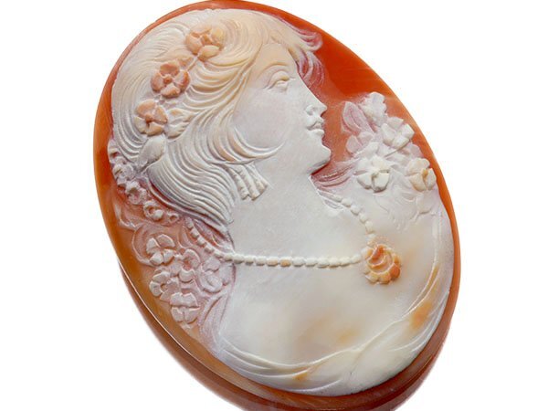 なびく髪の貴婦人の彫刻が魅力的なシェルカメオルースを激安価格で特別大放出致します!