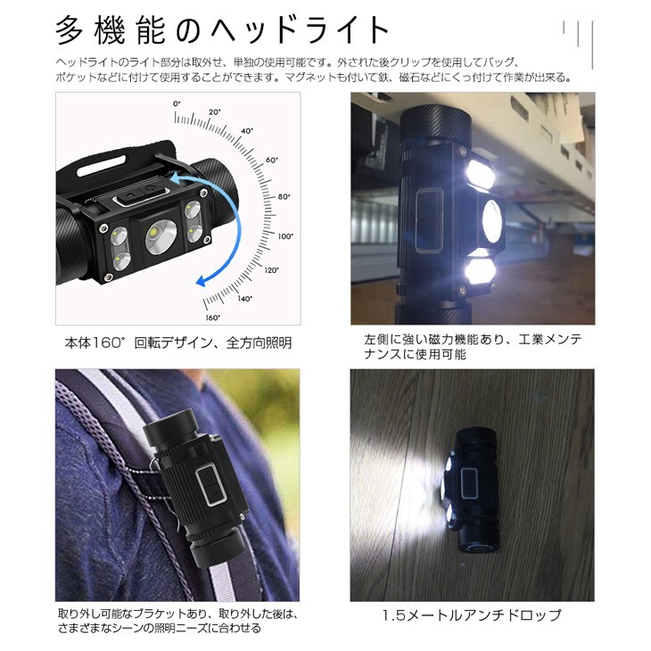 ボディは陽極酸化した航空レベルのアルミを採用します。充電ボートが隠れて設計されて市販品のゴムキャップ防水より防水性と美観性がアップします。ライトの左側に強い磁力機能あり、マグネットも付いて鉄、磁石などにくっ付けて作業が出来る。
